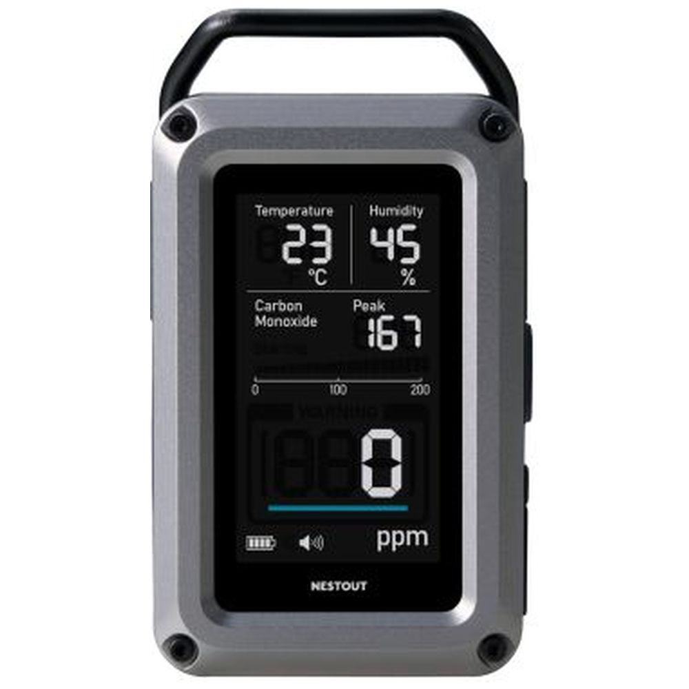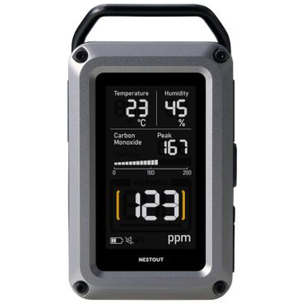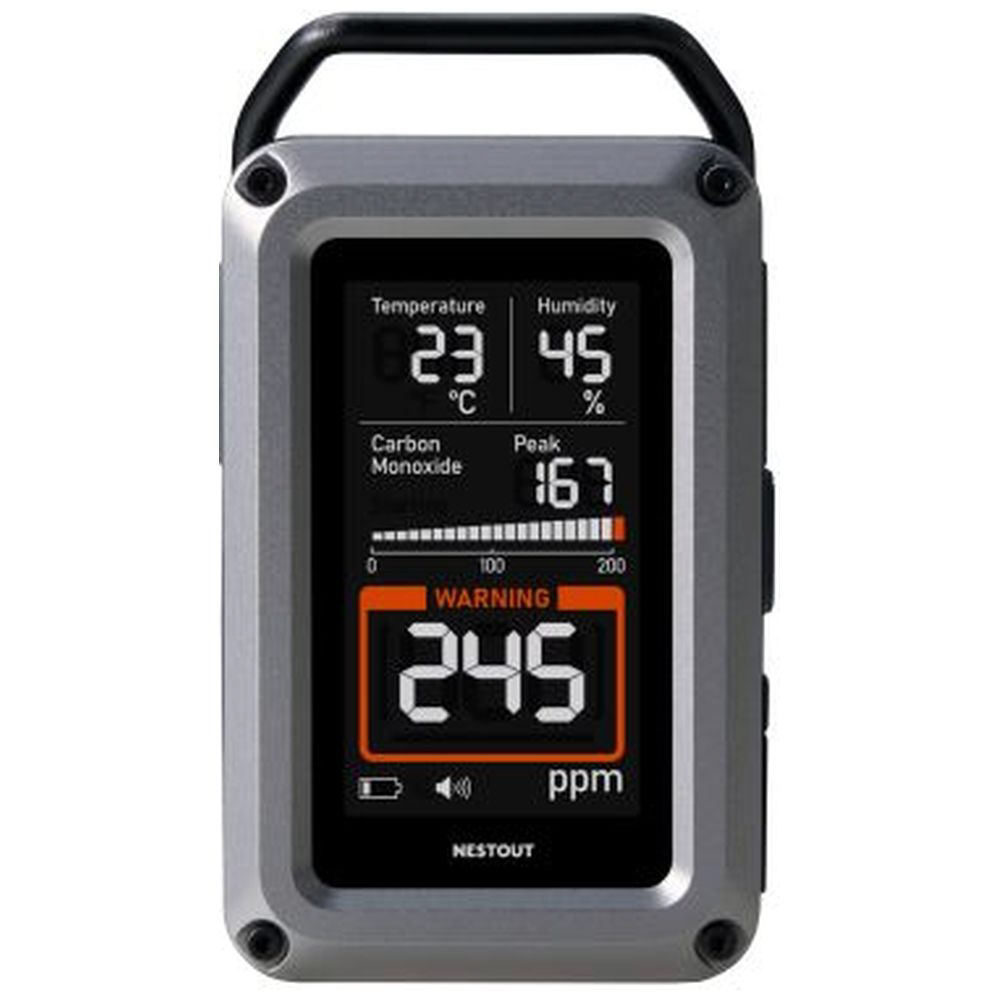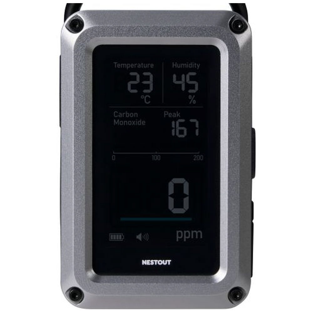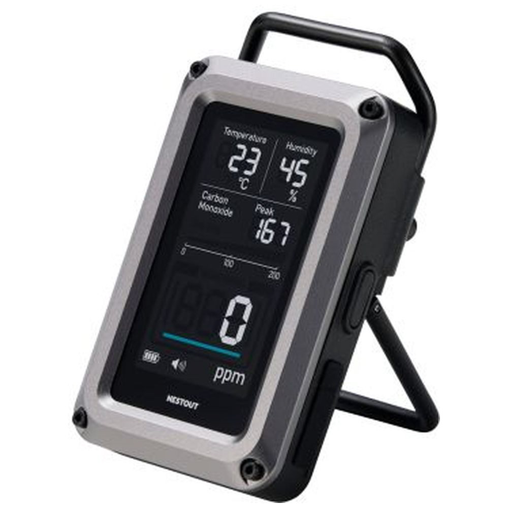 アウトドアに特化したブランド NESTOUT(ネストアウト)の、温湿度計を搭載した一酸化炭素アラームの3in1モデルです。