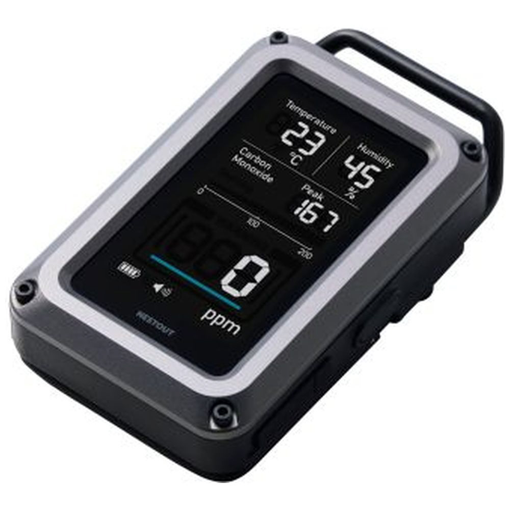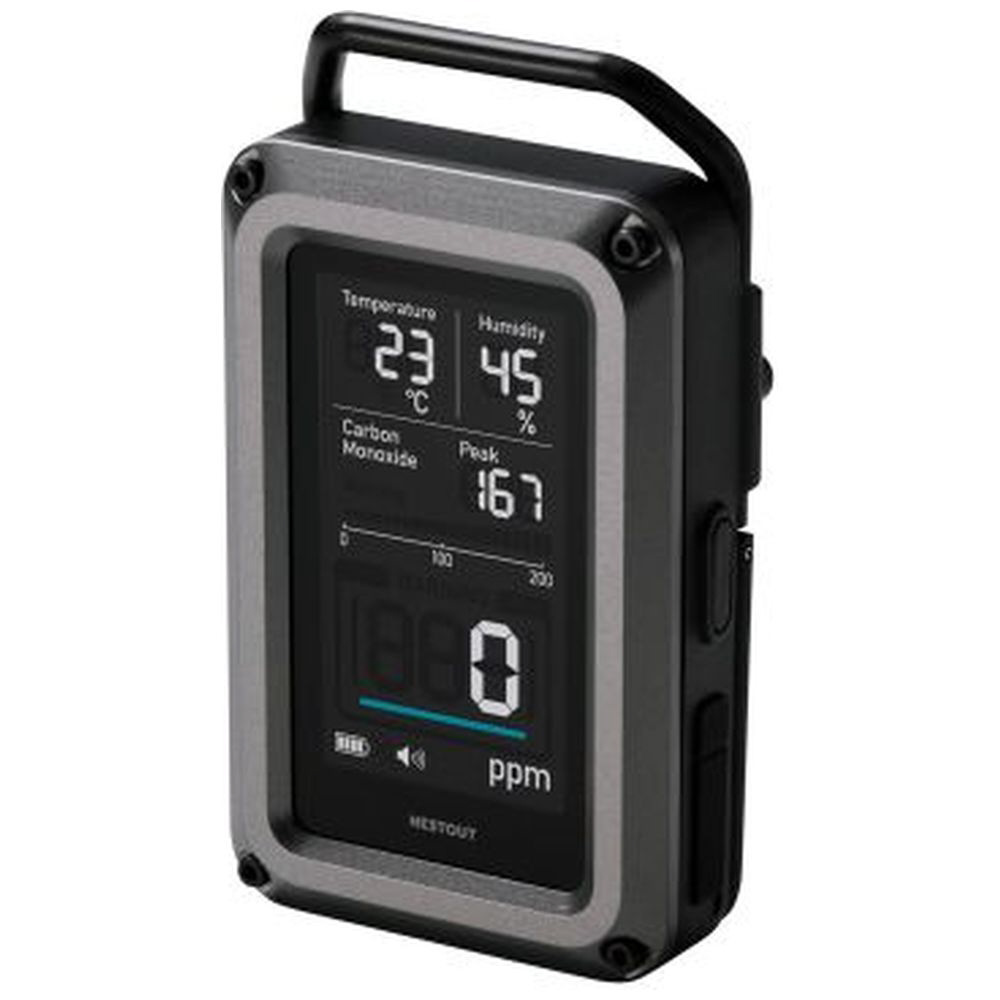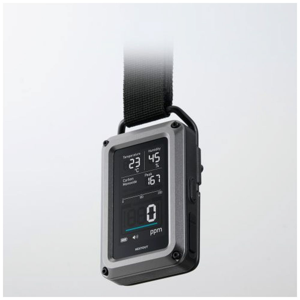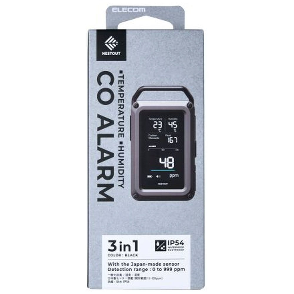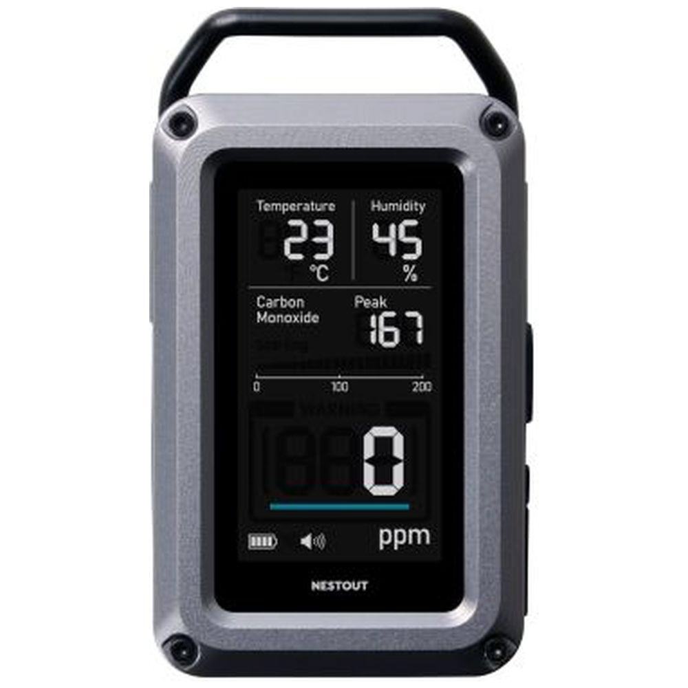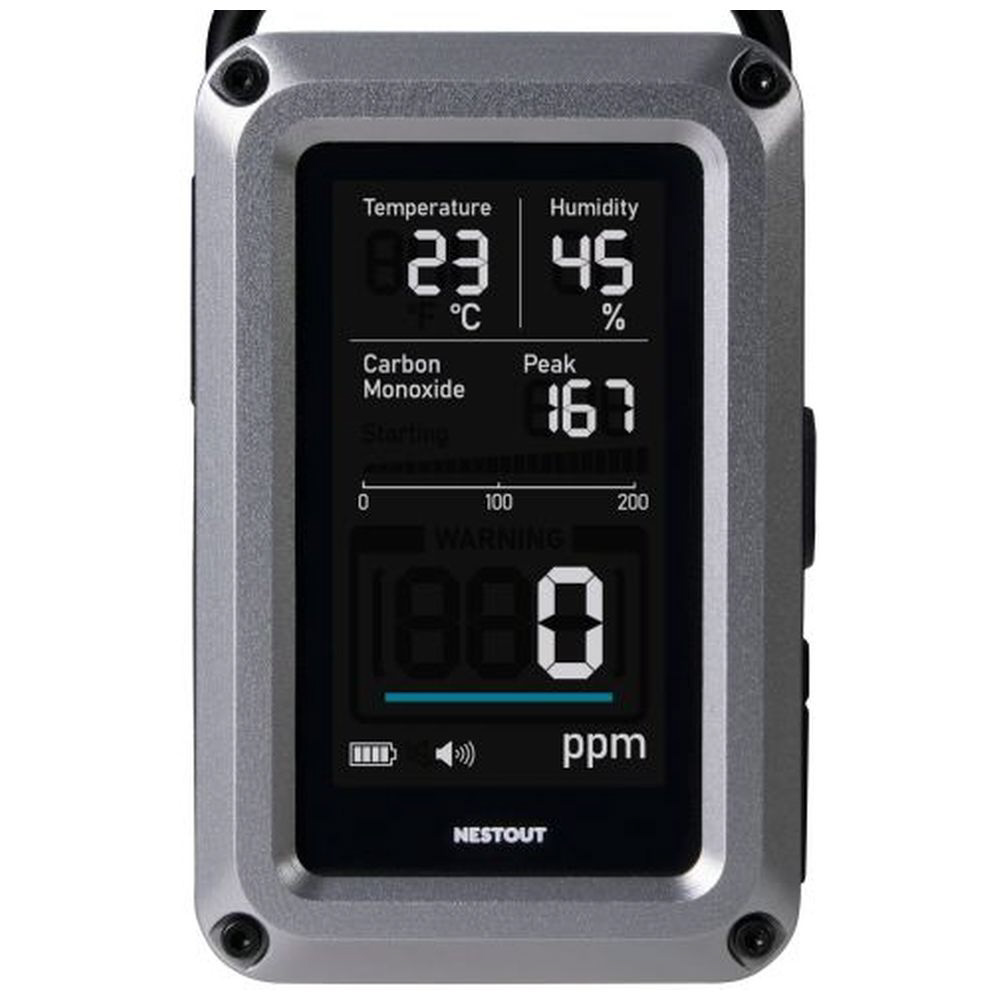 アウトドアに特化したブランド NESTOUT(ネストアウト)の、温湿度計を搭載した一酸化炭素アラームの3in1モデルです。