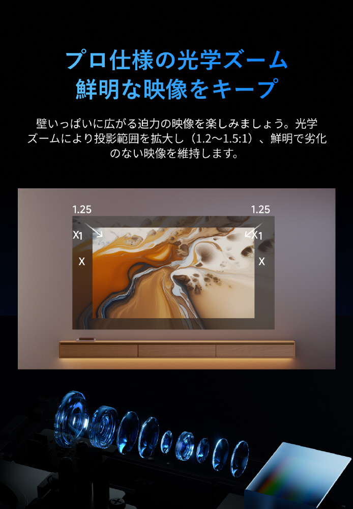 現時点で最も先進的な自社開発レンズを搭載しています。XGIMI X-Master レッドリングレンズは高解像度A級レンズモジュールに、宇宙工学レベルで使用されるレーザーガラスを組み合わせることで、比類のない明瞭さ、卓越した光透過率、そして長期にわたり安定したパフォーマンスを実現します。