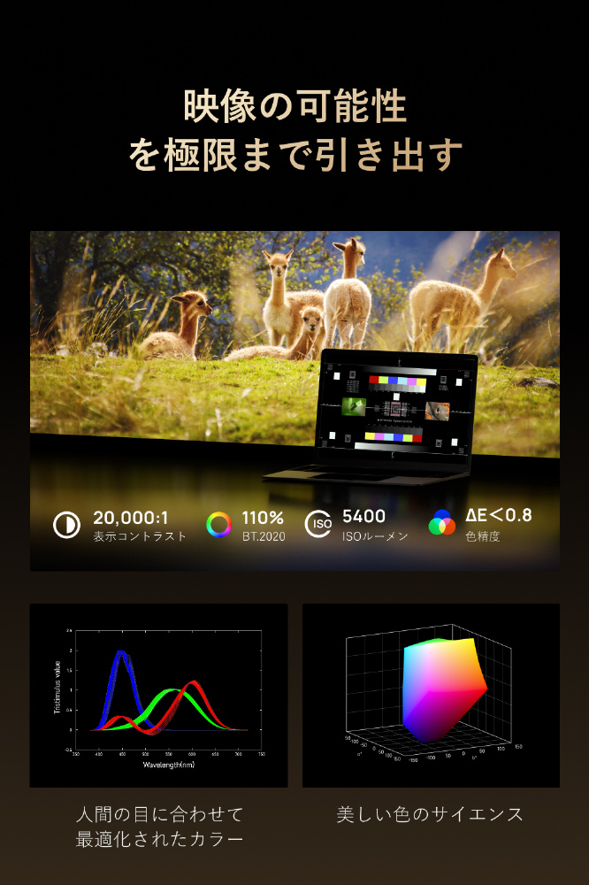 従来の4Kプロジェクターより明瞭度・色精度を大幅改善。