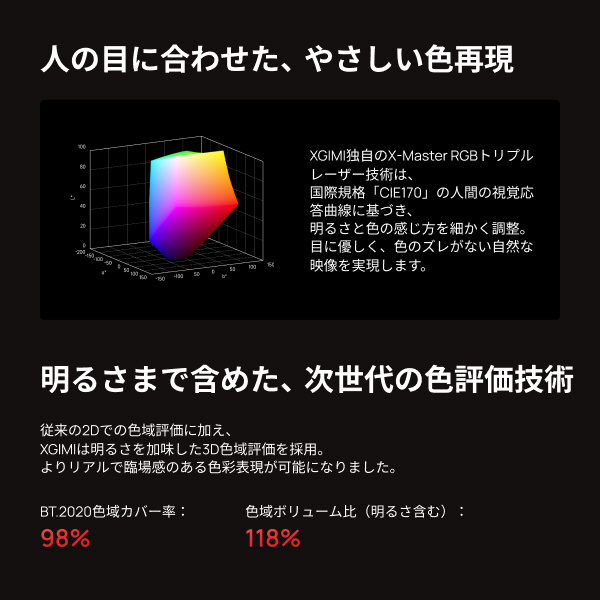 XGIMI独自の 「X-Master RGB 3色レーザーエンジン」 を搭載。