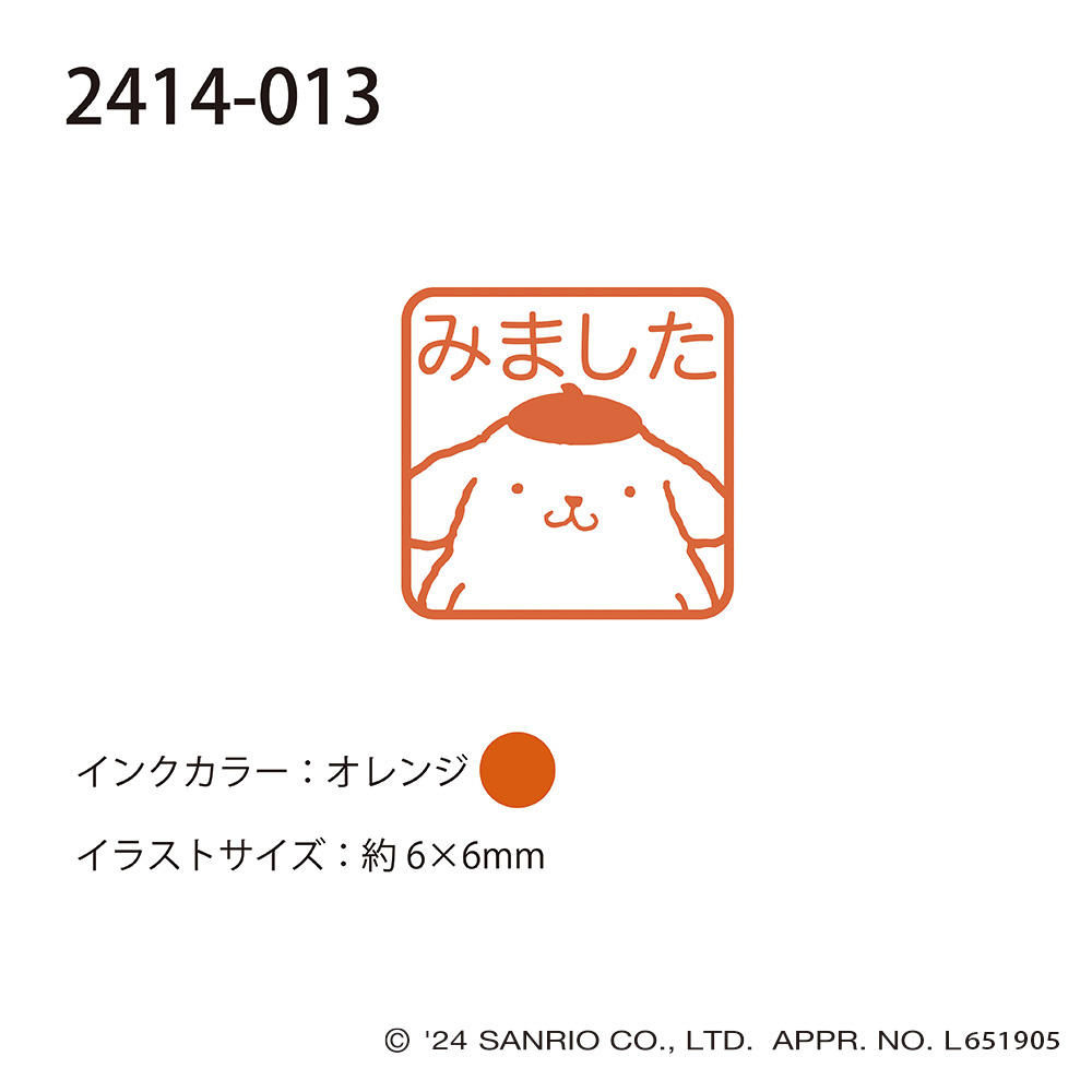 サンリオキャラクターズワンポイント浸透印  ポムポムプリン みました 2414-013