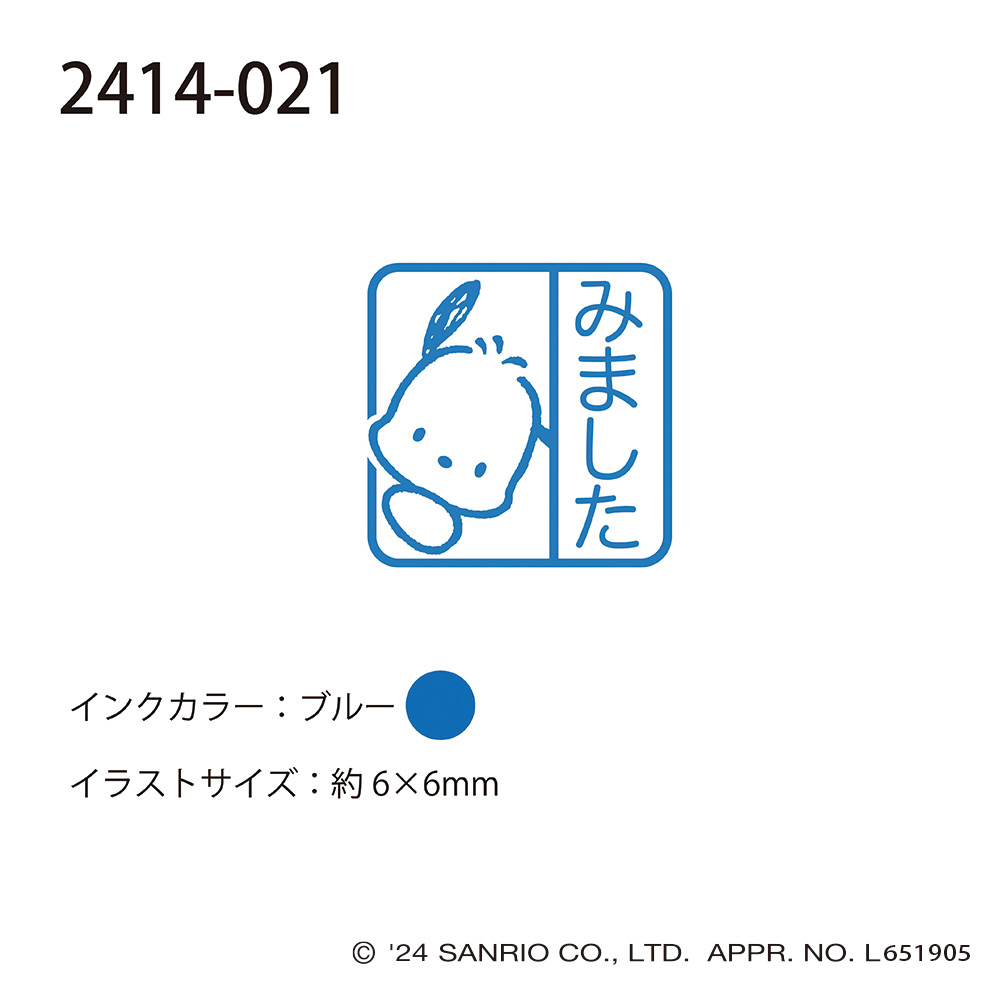 サンリオキャラクターズワンポイント浸透印 ポチャッコ みました 2414-021