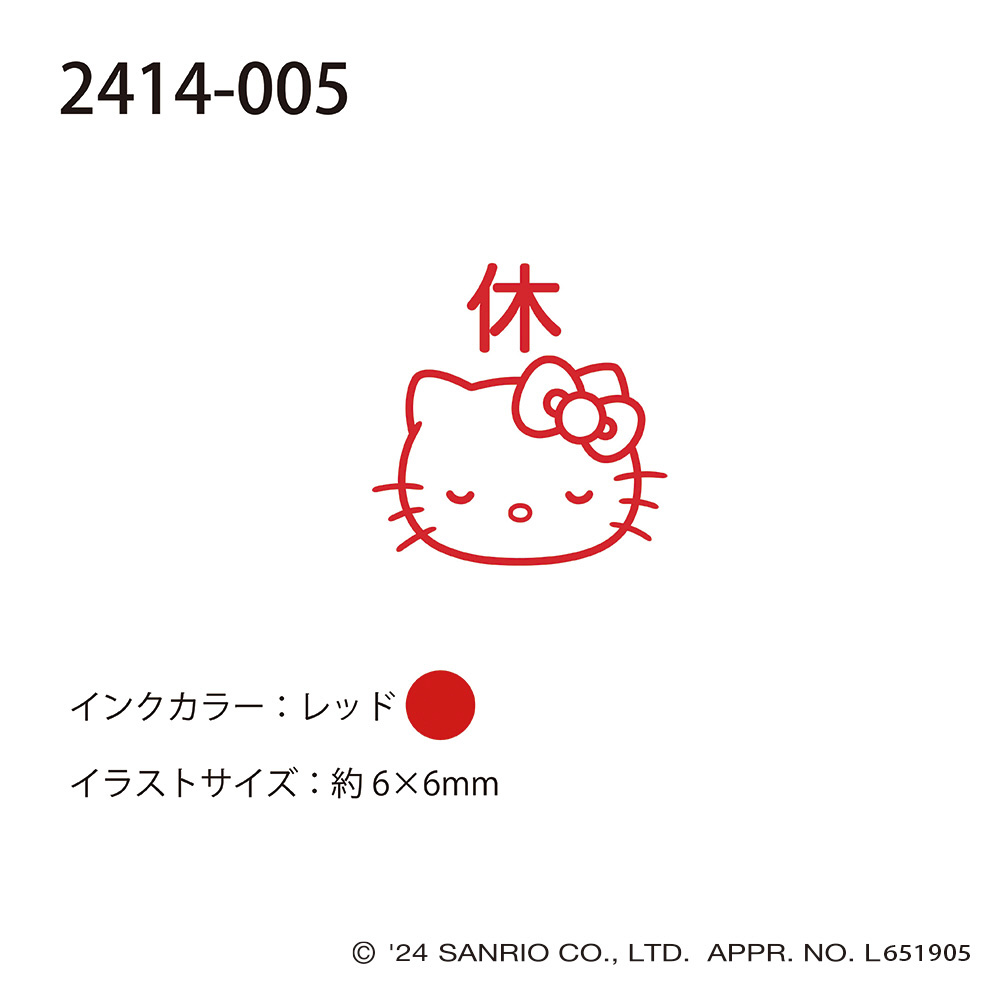 サンリオキャラクターズワンポイント浸透印 キティ 休 2414-005
