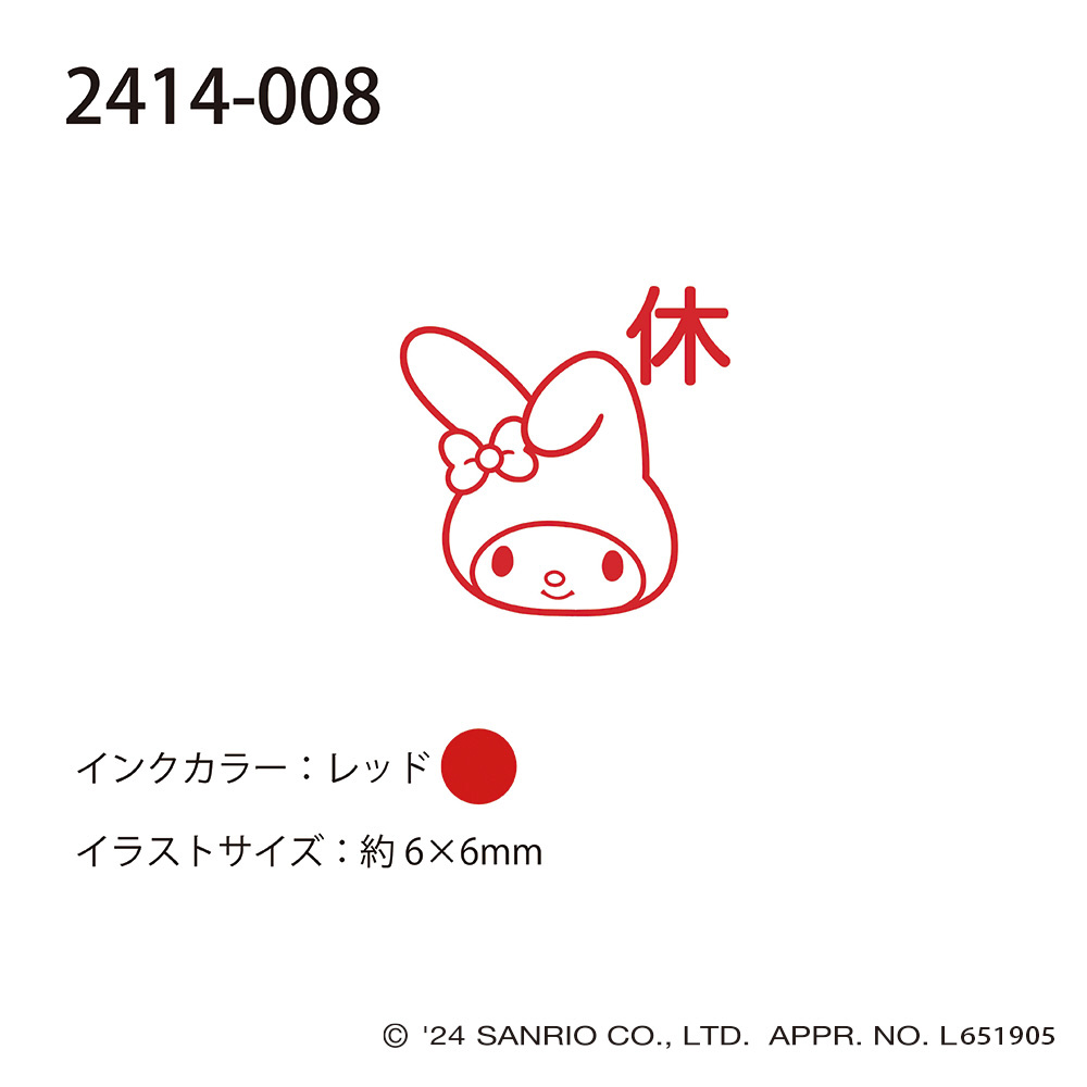 サンリオキャラクターズワンポイント浸透印 マイメロディ 休 2414-008