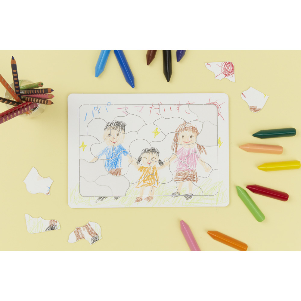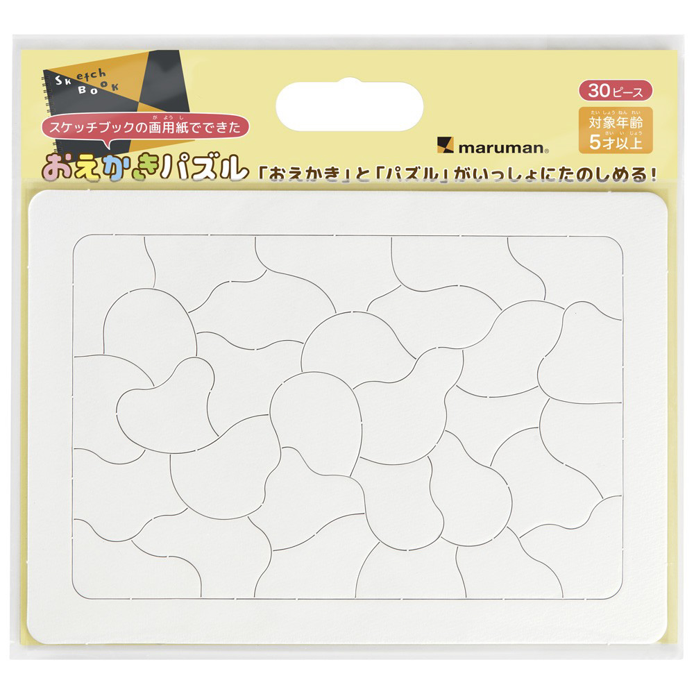 色鉛筆、水彩、クレヨン、マーカーと様々な描画材が使えるマルマンのオリジナル画用紙がパズルになって新登場。子供たちが大好きな「おえかき/ぬりえ」と「パズル」が合体した「おえかきパズル」です。おえかき後とぬりえ後にパズルで何度も楽しめて、屋内での遊びにピッタリ!B5サイズ、30ピース