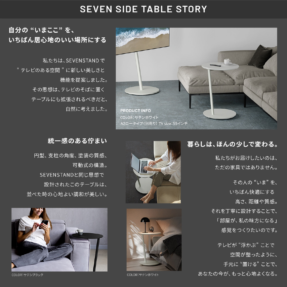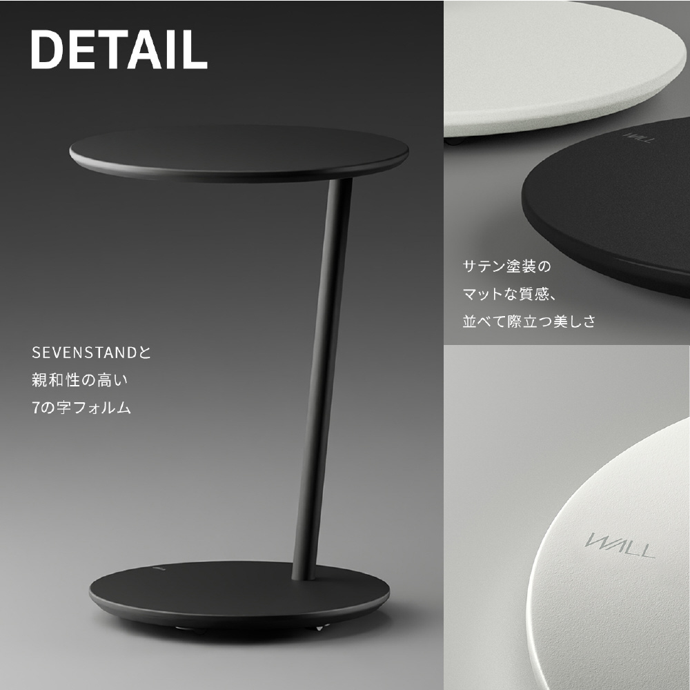 WALL A2シリーズと同じ「7の字」デザインのサイドテーブル。スッキリ省スペースに設置できるWALLのデザインコンセプトから生まれたシリーズ製品です。