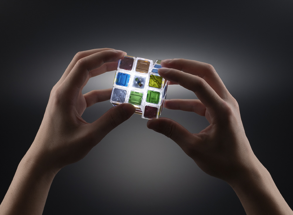 モード1はチェックモード。ボタンを押している間だけルービックキューブが光る!色を確認しながらそろえよう!