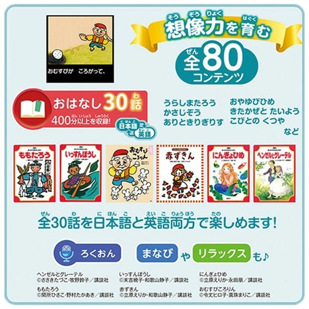 講談社発行の日本と世界のおはなし30コンテンツを収録。