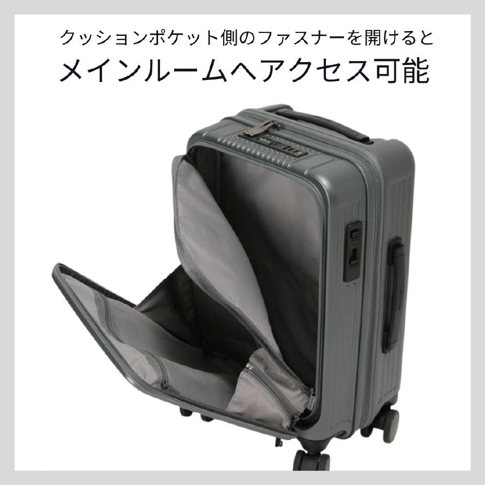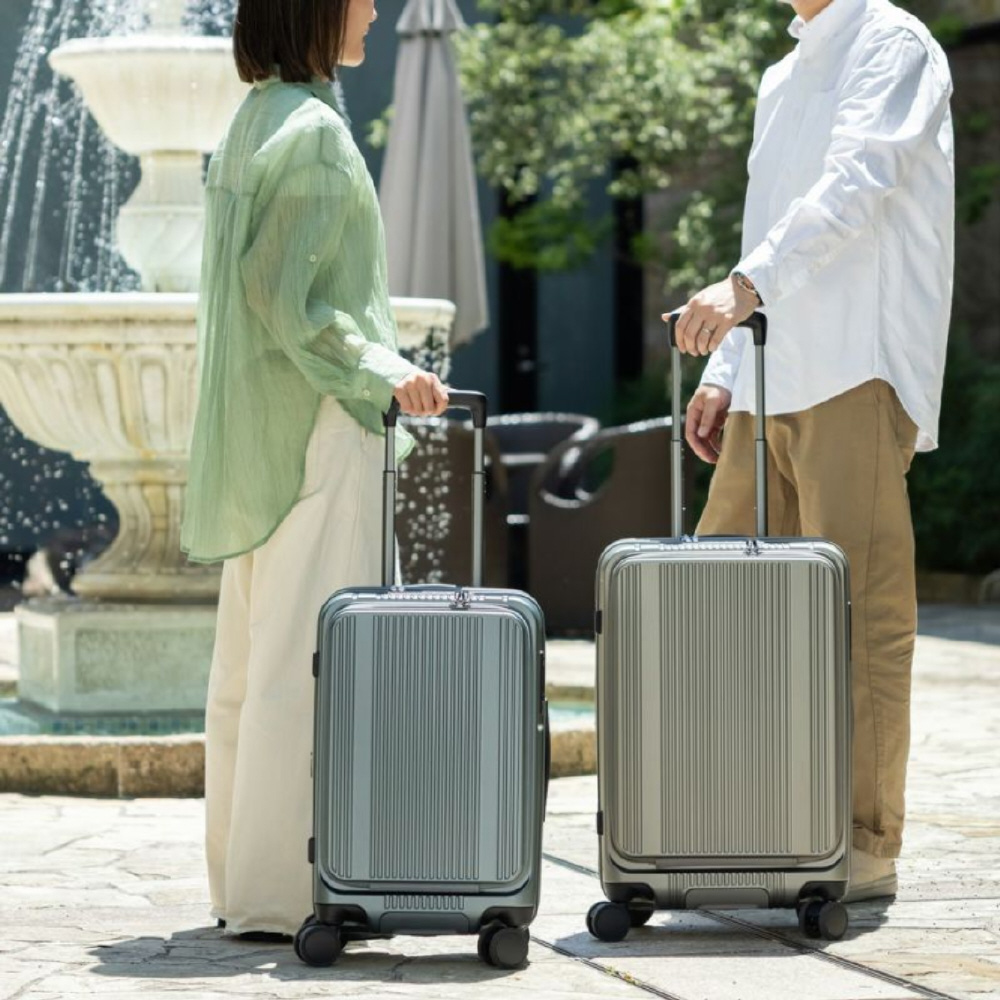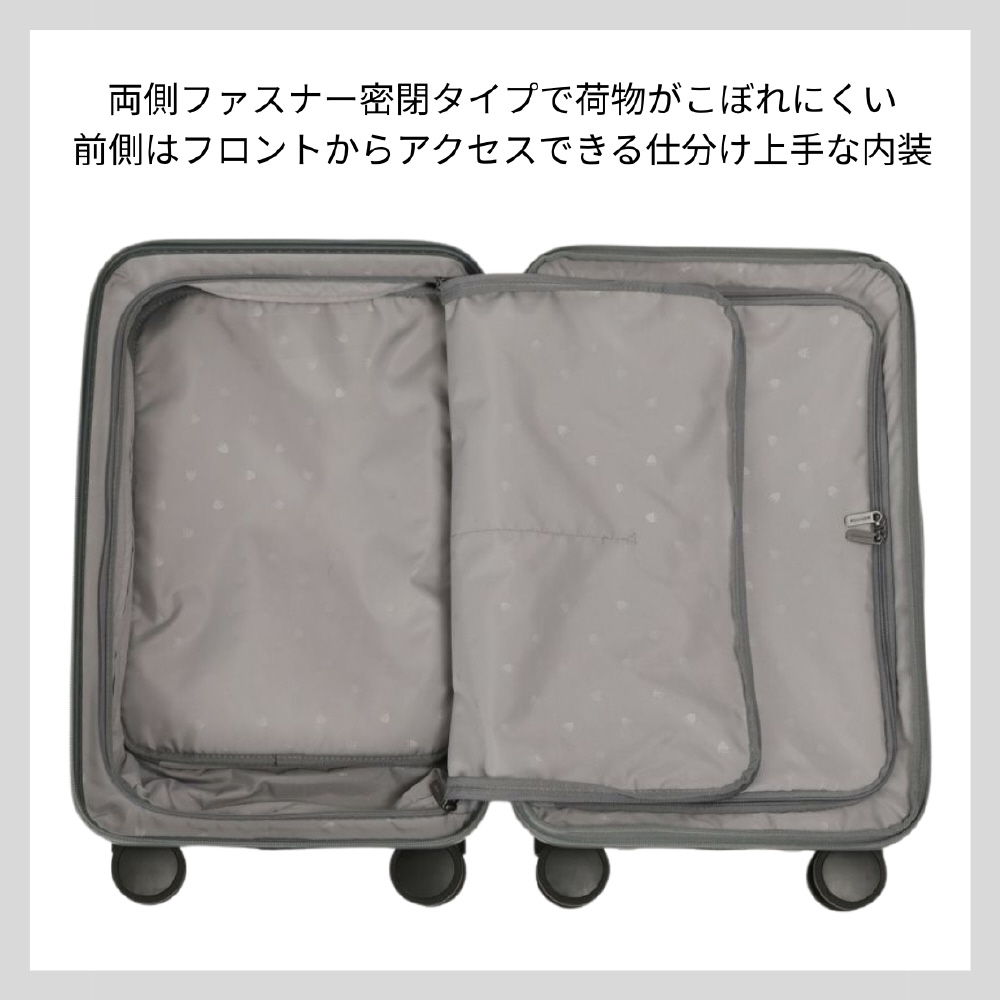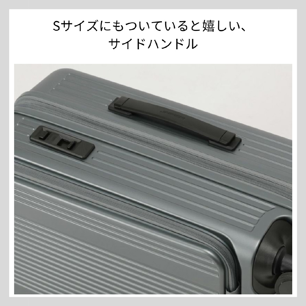 軽量かつ頑丈なポリカーボネート100%素材を採用し、傷が目立ちにくい縦リブデザインで高い強度と上質感を両立。通勤から出張・旅行まで幅広く対応できるフロントオープンタイプのスーツケースです。荷物の増減に応じて約37L→43Lへ拡張可能なエキスパンダブル機能も搭載しています。