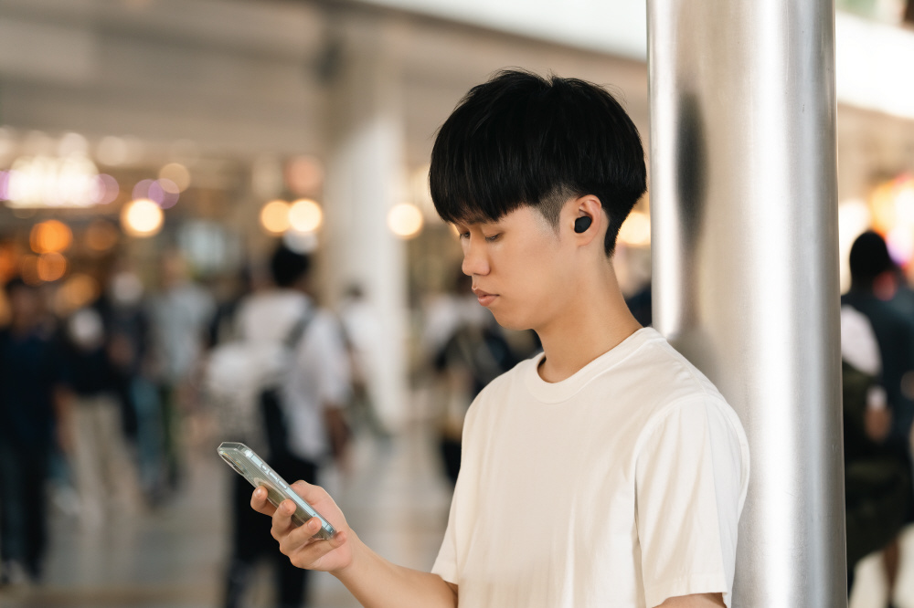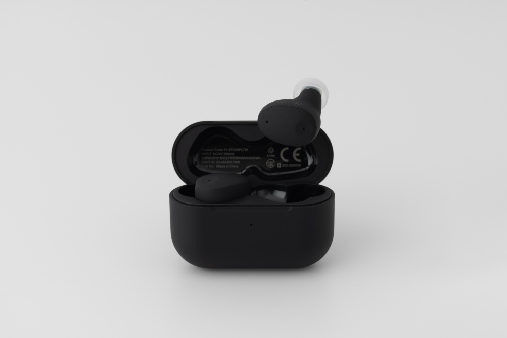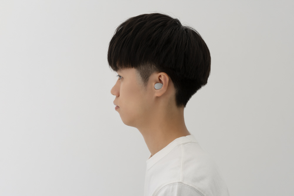 極小サイズによる高い遮音性能に加え、このサイズでは異例の「ノイズキャンセリング」を搭載しました。独自のアルゴリズムにより、音質と遮音性を両立したノイズキャンセリングに加え、周囲の音を聞き取りやすくする「アンビエントモード」を搭載。L側のワンタッチで切替が可能で、電車の車内等で咄嗟にアナウンスを聞きたいときなどに、装着したままで自在に切替が可能です。