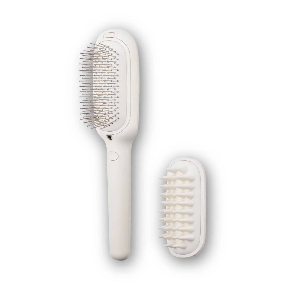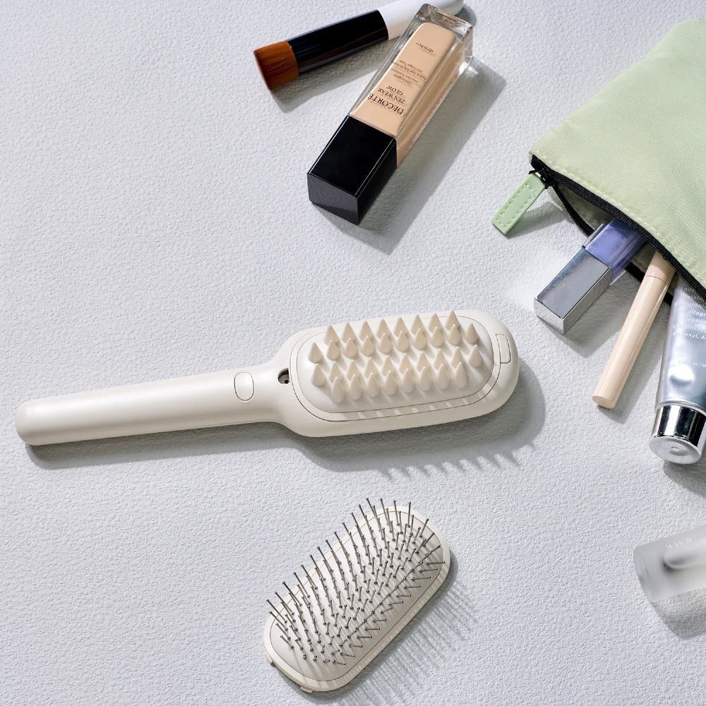 メタルピンの「ソフトクッション」とシリコンの「幅広スカルプブラシ」という使用感や用途の異なる2種類のヘッドがセットになっているので、朝晩のヘアケアや頭皮のリフレッシュ、洗髪後のブロー・スタイリングと幅広いシーンで活躍。