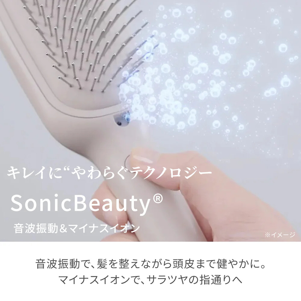 本体には髪にうるおいを与えるマイナスイオン機能を搭載し、音波振動で毛流れを整えながら硬くなりやすい頭皮まで刺激します。
