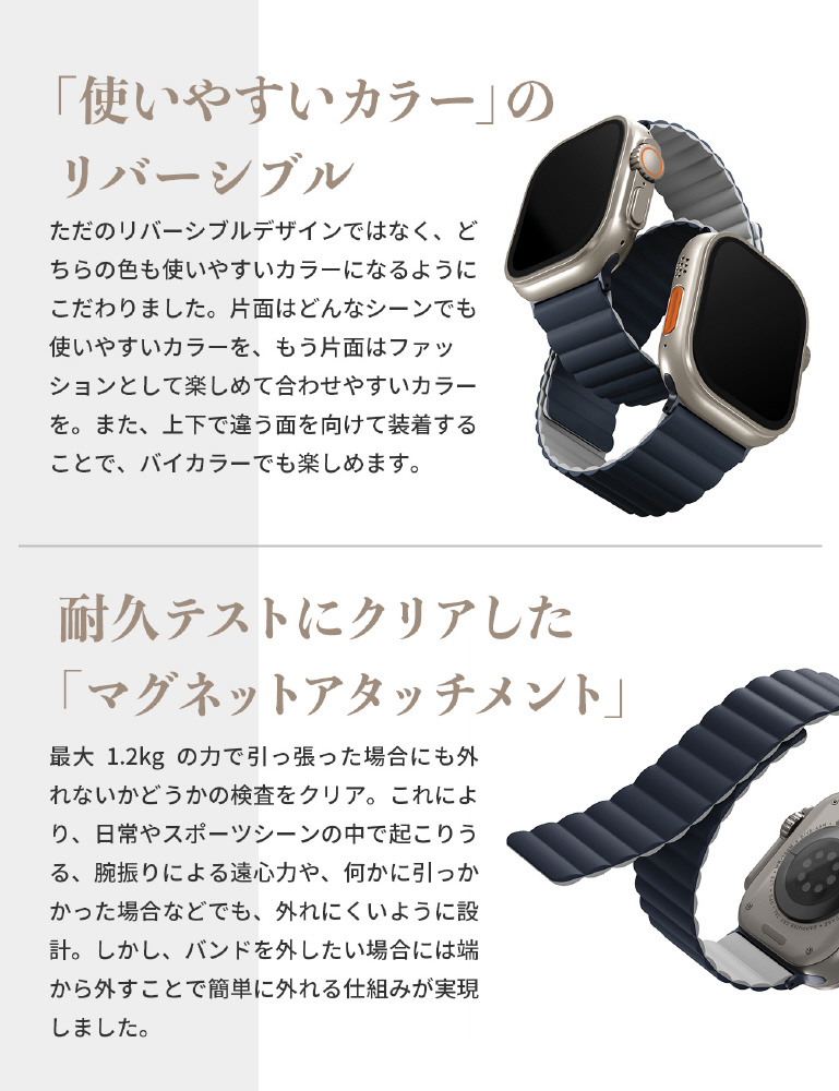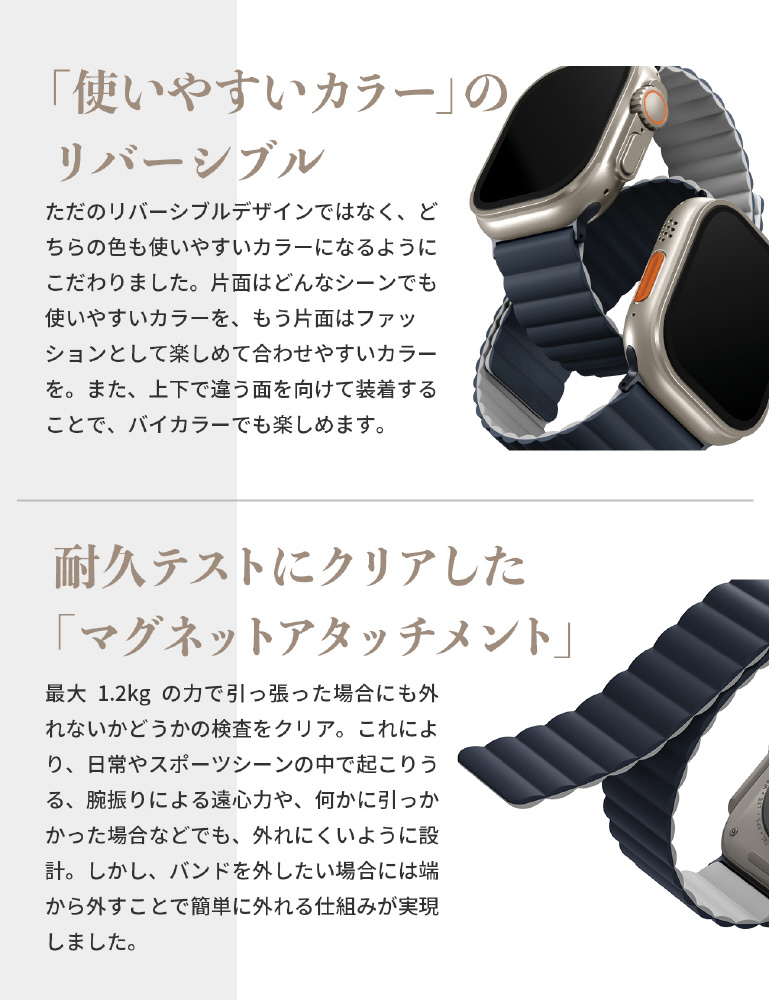 UNIQ REVIX REVERSIBLE MAGNETIC APPLE WATCH STRAP バンド 49/45/44/42MM STORM BLUE/CHALK GREY UNIQ-49MM-REVSBLUCGRY