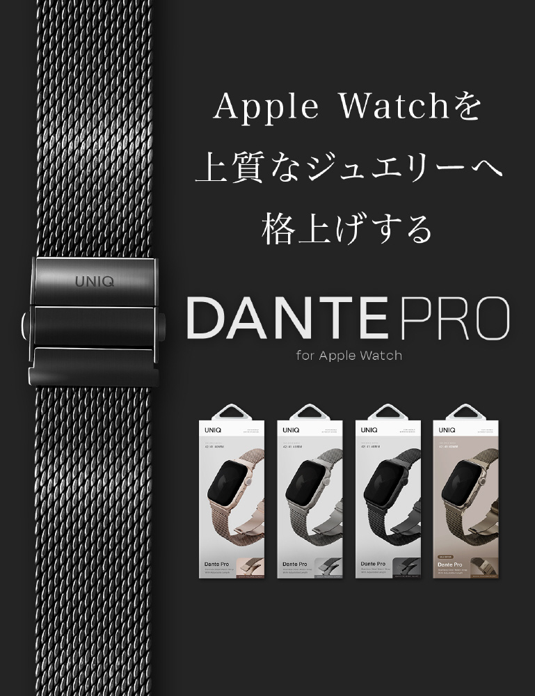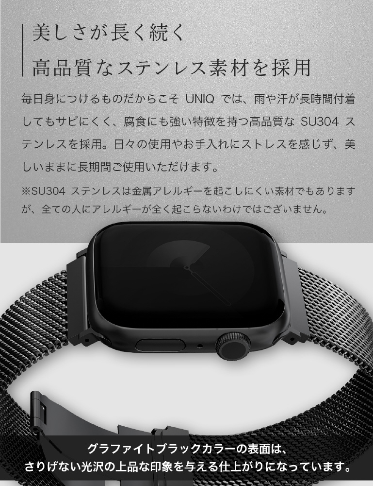 UNIQ DANTE PRO APPLE WATCH SELF-ADJUSTABLE MESH STEEL BAND バンド 42/41/40MM GRAPHITE BLACK UNIQ-42MM-DANPGBLK