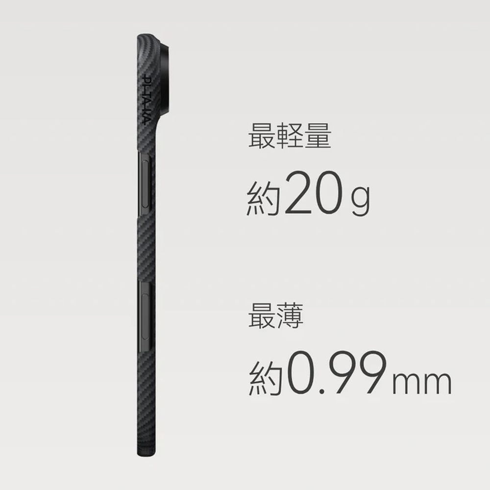 軍用素材としてももちいられる強靭な素材アラミドを編み込んだケースです。厚み1mmの極薄ケースは驚くほどスリムで軽量なのでiPhoneのサイズ感をそのままに感じながらご利用頂けます。MagSafe対応