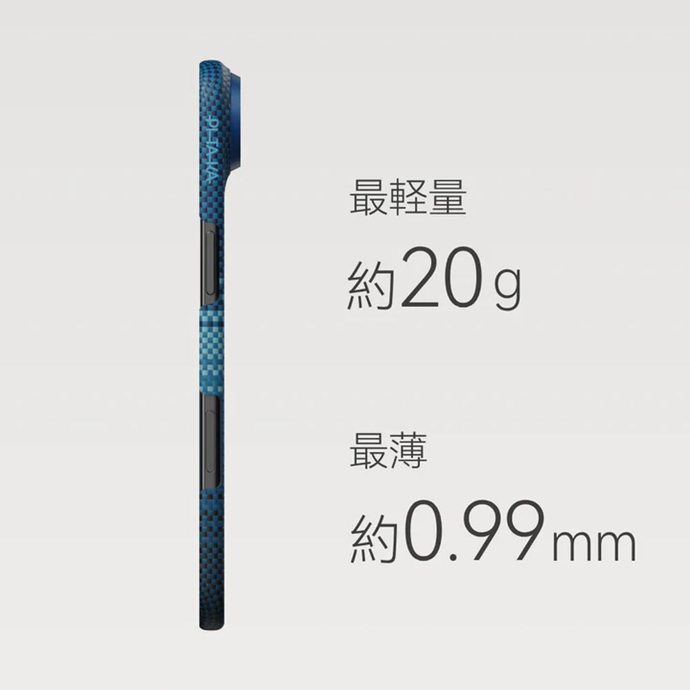 軍用素材としてももちいられる強靭な素材アラミドを編み込んだケースです。厚み1mmの極薄ケースは驚くほどスリムで軽量なのでiPhoneのサイズ感をそのままに感じながらご利用頂けます。MagSafe対応