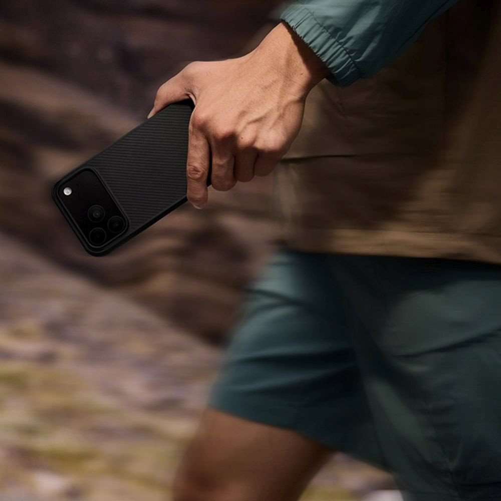 航空宇宙産業でも使用されるグレードのアラミド繊維とTPUが、スムーズに一体化しながらカバーすることで、iPhoneの背面と側面を保護します。