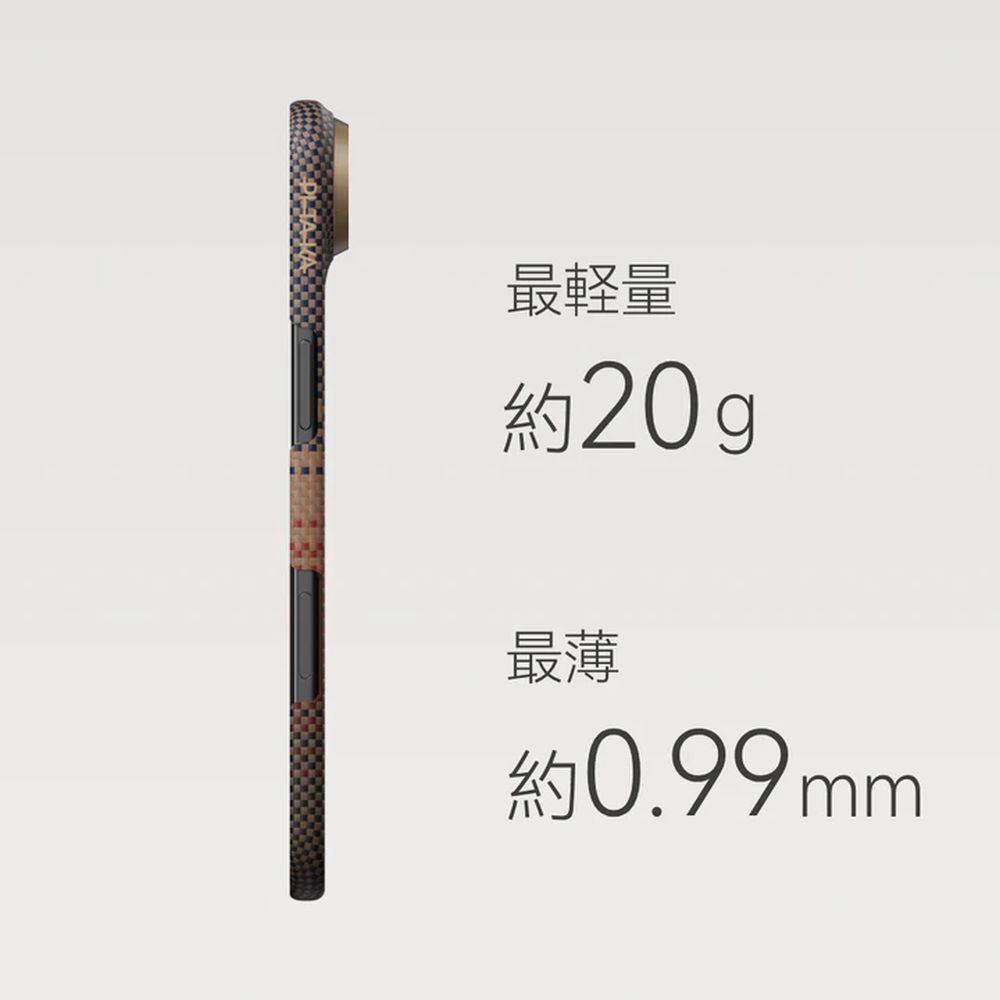 軍用素材としてももちいられる強靭な素材アラミドを編み込んだケースです。厚み1mmの極薄ケースは驚くほどスリムで軽量なのでiPhoneのサイズ感をそのままに感じながらご利用頂けます。MagSafe対応