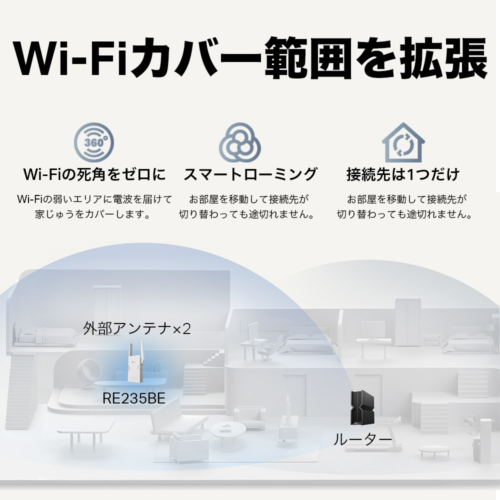 RE235BE Wi-Fi中継機【コンセント直挿し】2882+688Mbps [Wi-Fi 7(be) /IPv6対応]