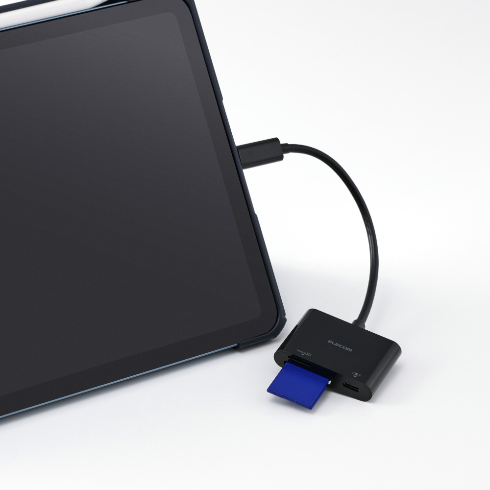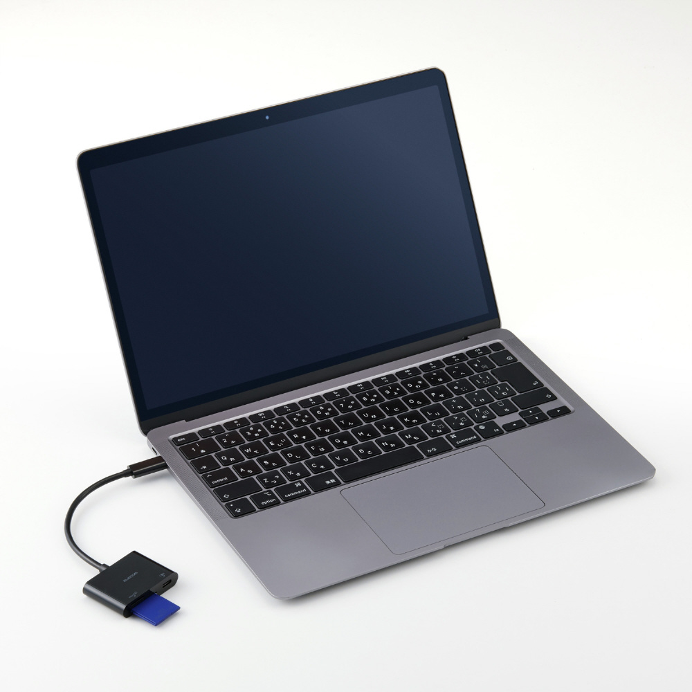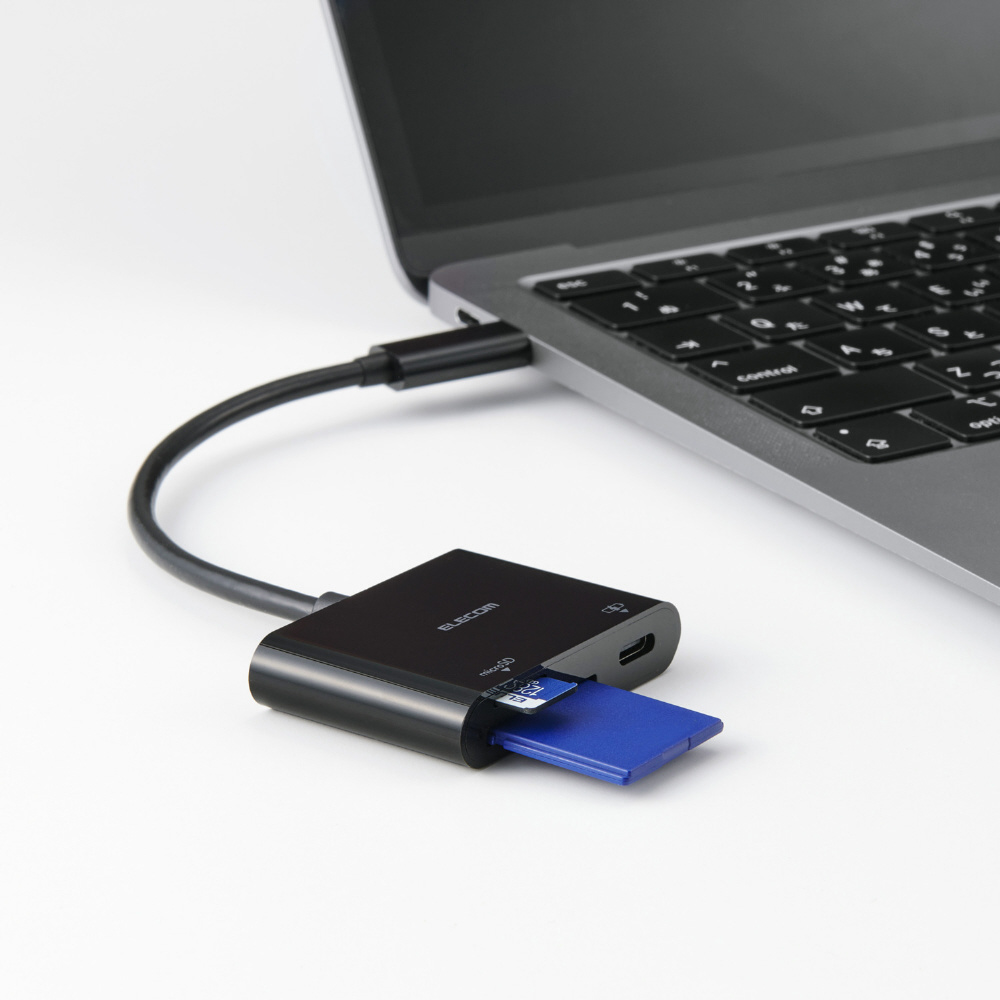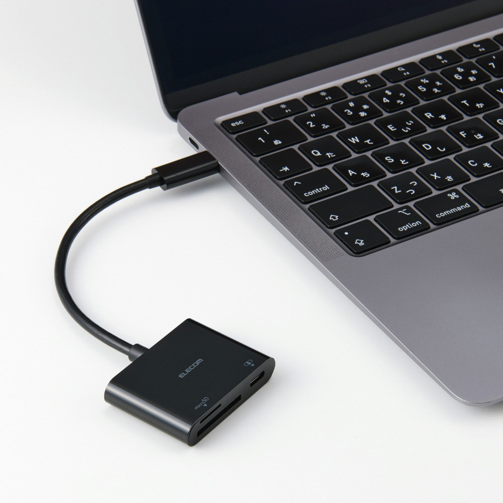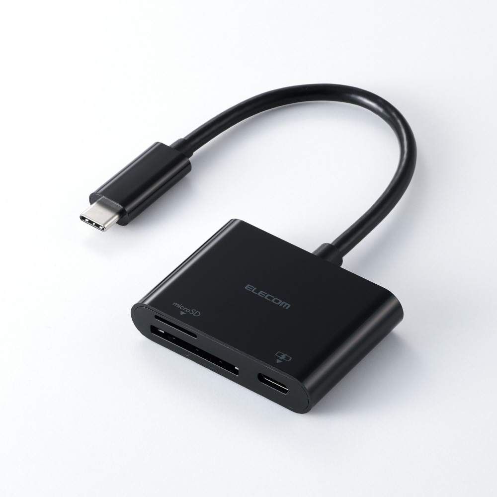 MR3C-C20PBK SDカードリーダー Type-C SD/microSD対応 PD100W 充電しながらデータ転送 ケーブル一体型 ブラック