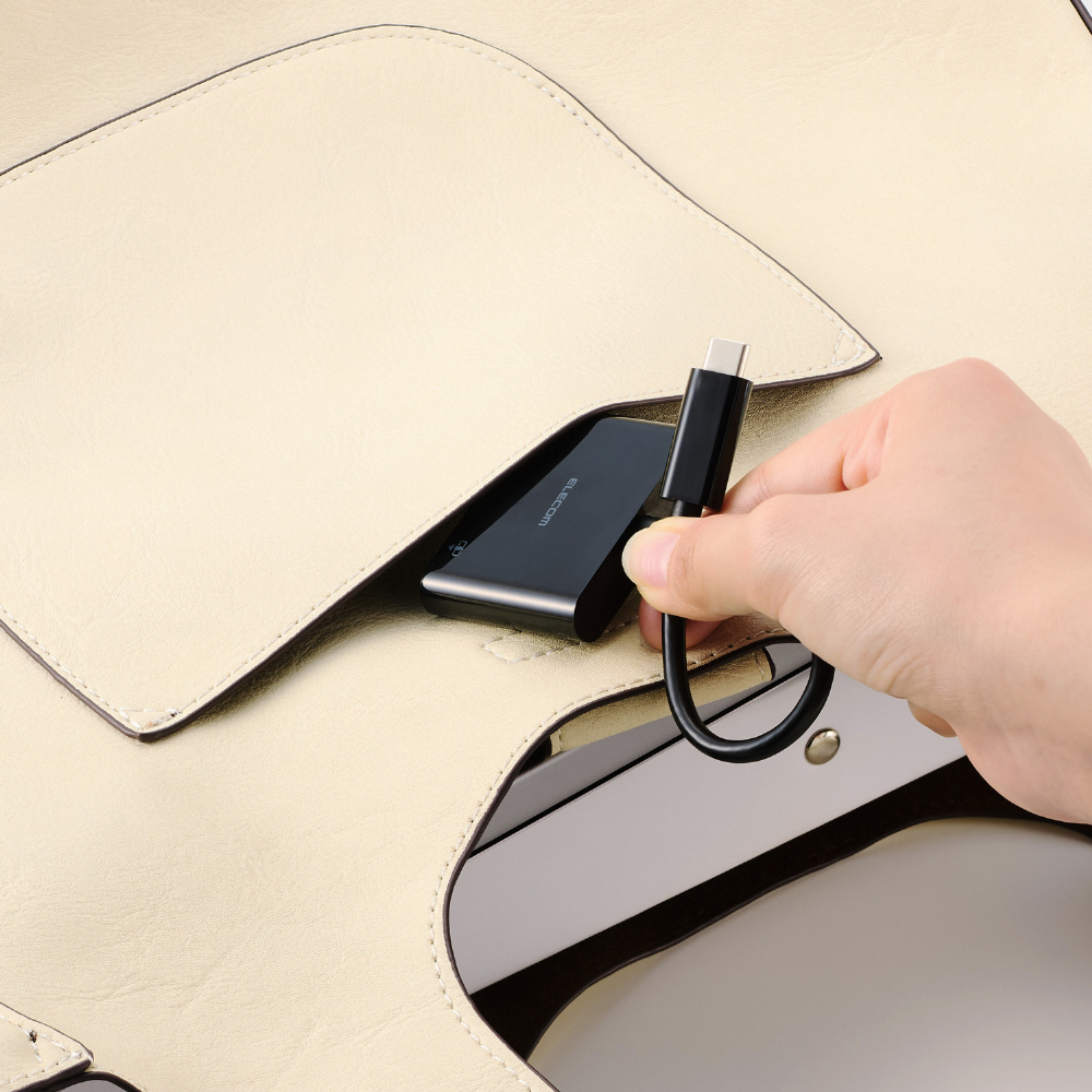 USB Power Deliveryに対応した最大入力100Wの電力供給ができる、充電専用のUSB Type-Cポートを1ポート搭載しています。データ転送しながらスマートフォンやタブレットの高速充電が可能なので、大量のデータ転送も充電を気にせず行えます。