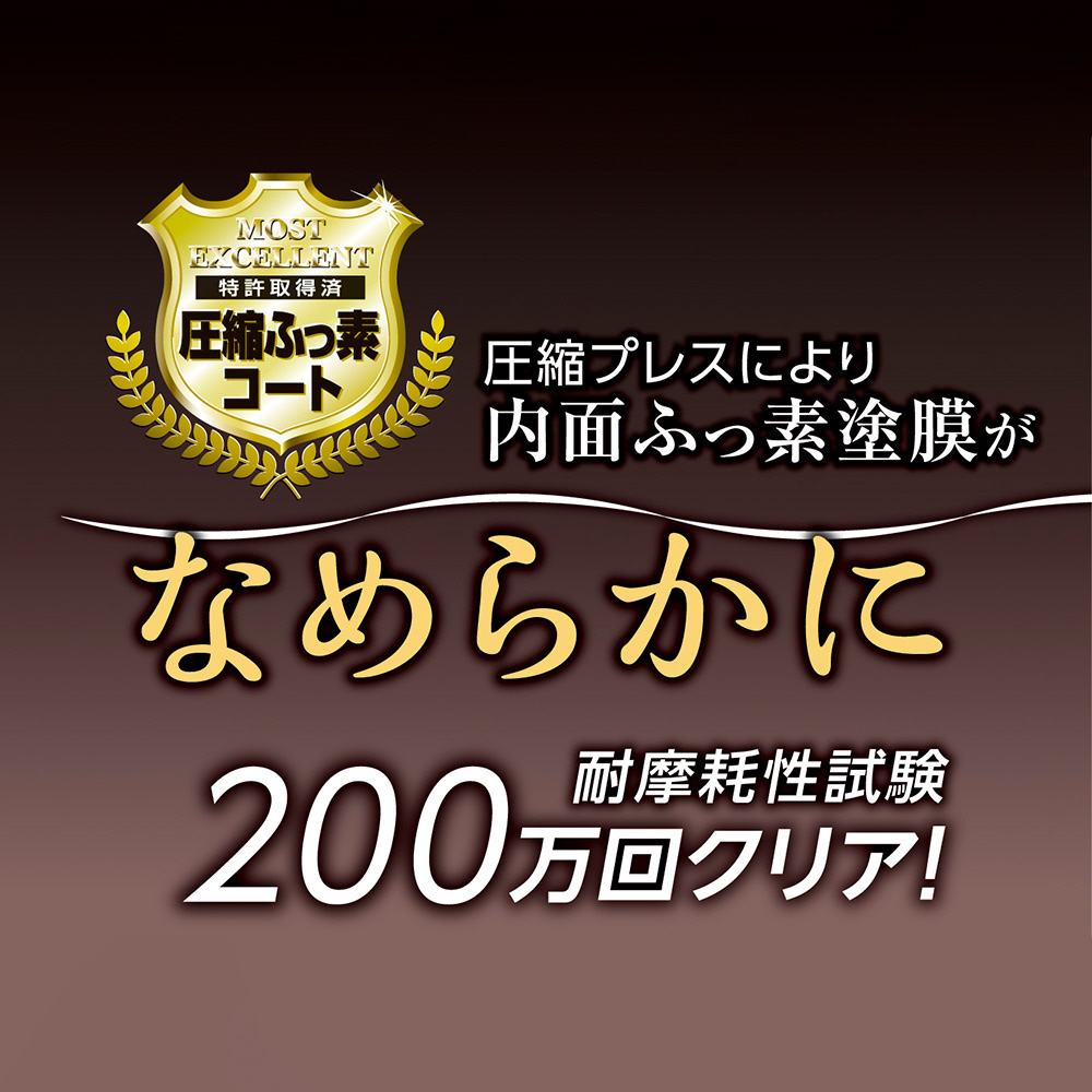 圧縮プレスにより内面ふっ素塗膜が傷つきにくく、なめらかに。