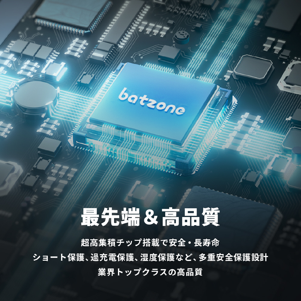 高集積ICチップ搭載による過充電・過放電・温度保護・短絡防止機能を搭載!