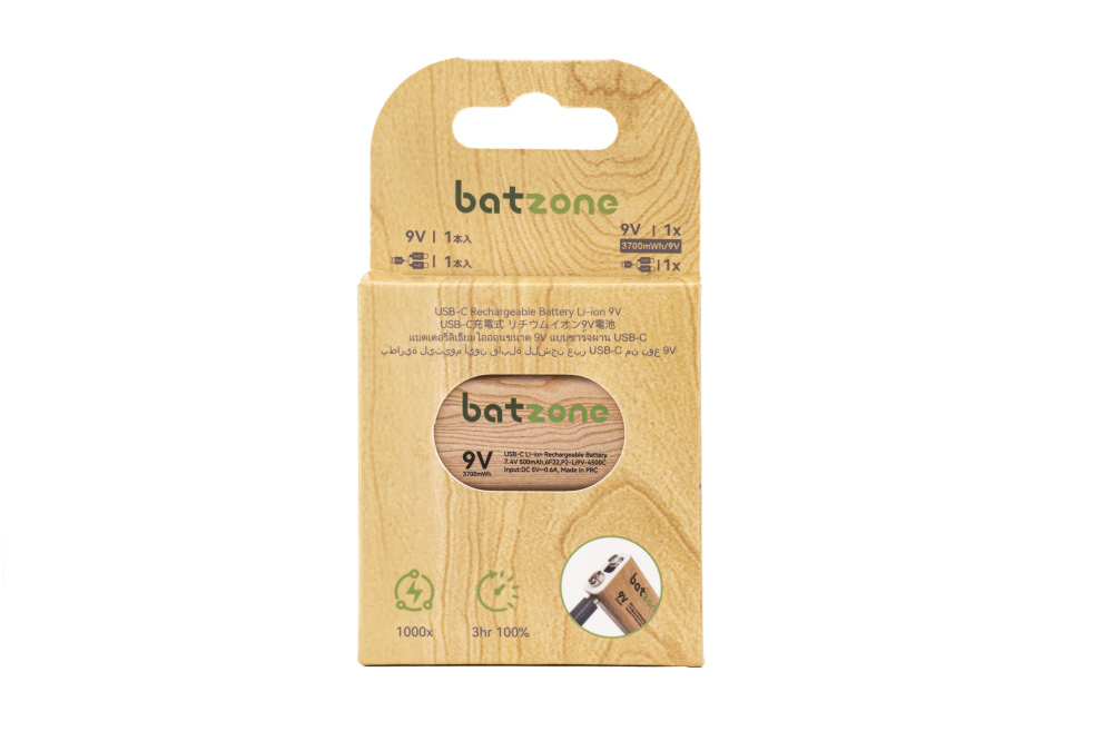 batzone リチウムイオン充電池 9V(1本入り) Type-Cケーブル付 P2-LI9V-4500C-1