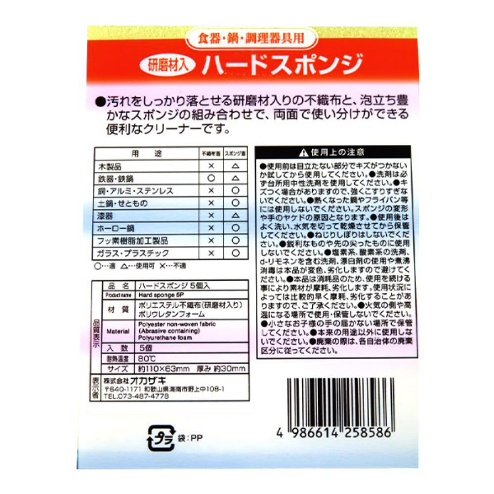 ハードスポンジ キッチンスポンジ 5個入 425858
