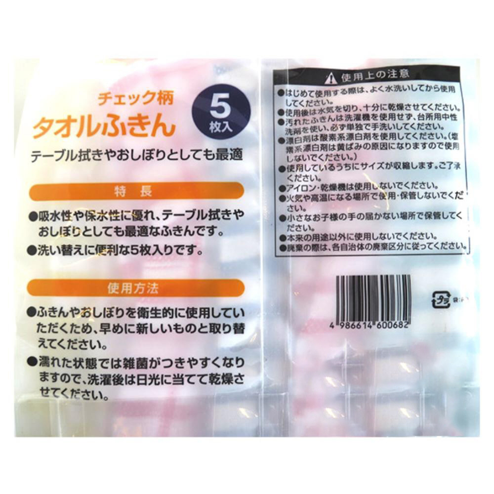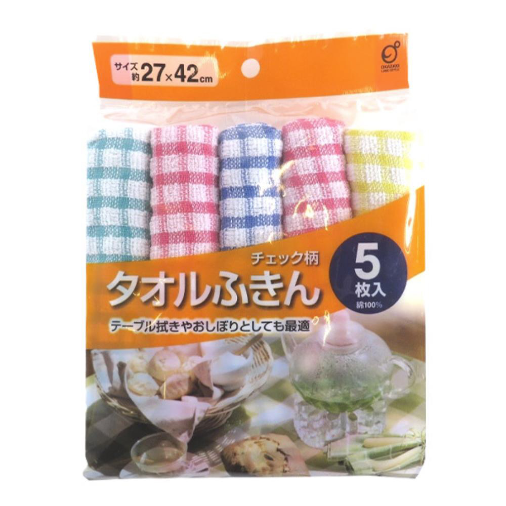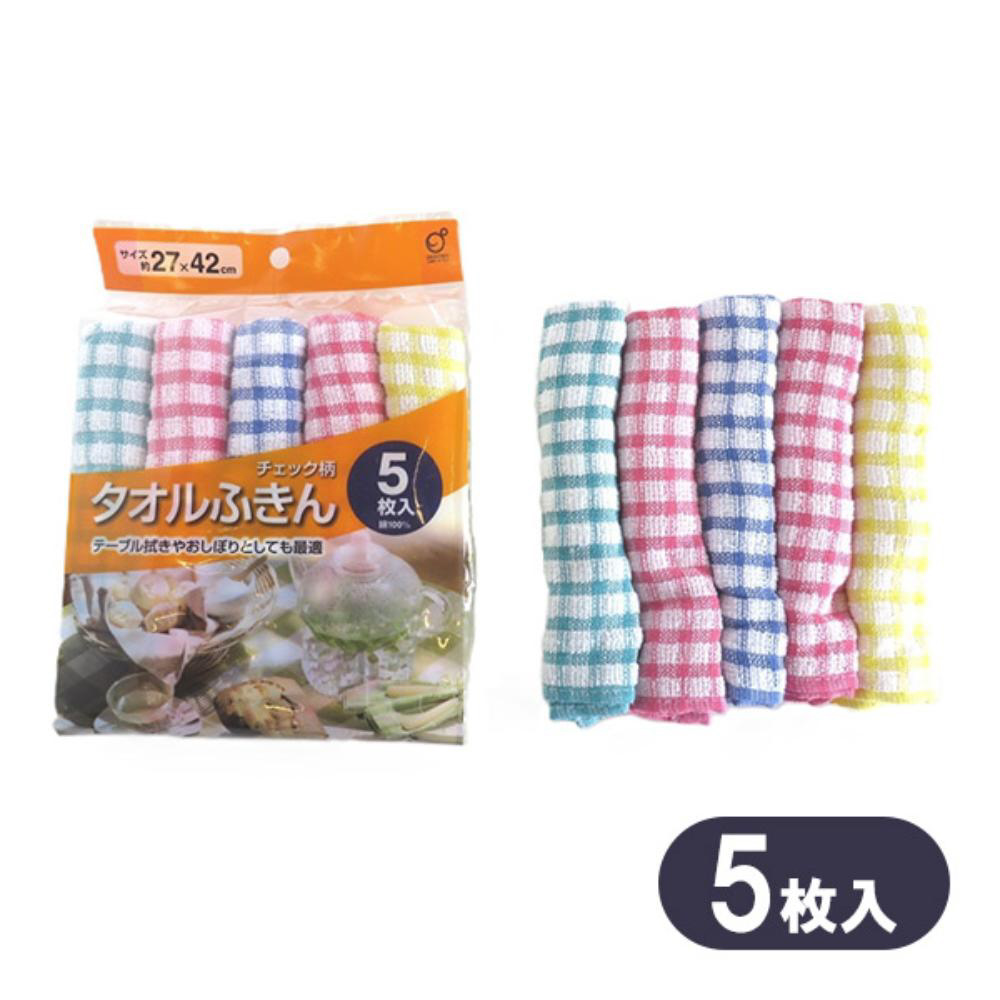 タオルふきん チェック柄 5枚入