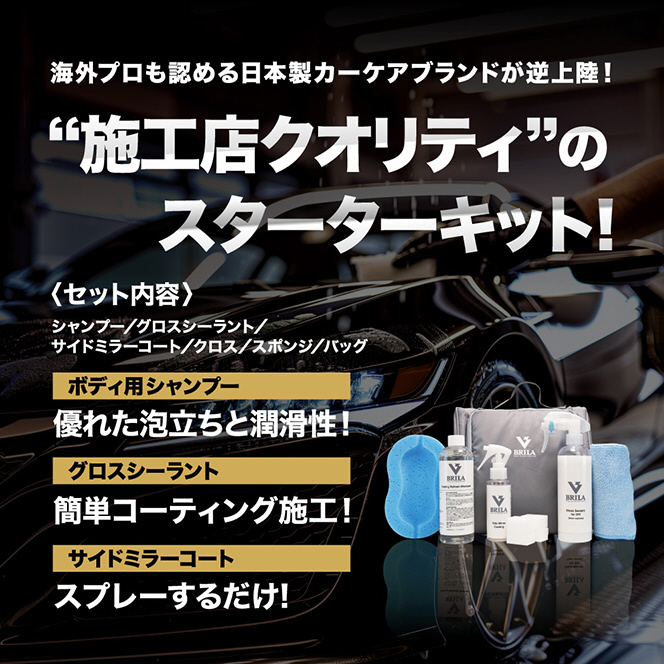 少量でも泡立ちが良いリフレッシュシャンプーと車のボディをしっかり保護するグロスシーラント、超撥水サイドミラーコーティングがセットになったカーケアセット。大切な愛車の汚れをしっかり落とし、滑らかさと艶を高め、輝きをさらに引き立て美しいボディを維持します。