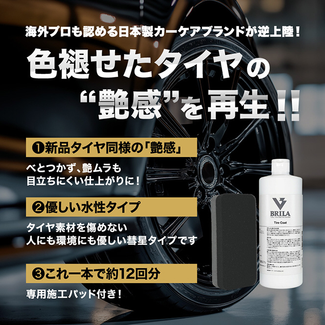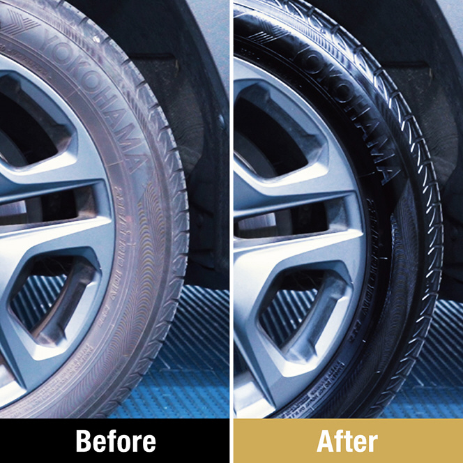 色褪せたタイヤの艶感を再生させるタイヤコートです。