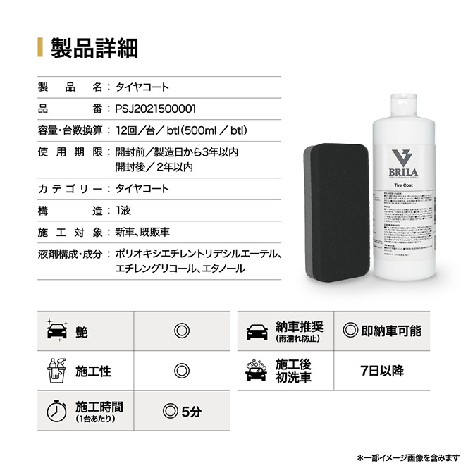 タイヤコート タイヤ 艶 速乾 素材を傷つけない水性 パッド付 PSJ2021500001