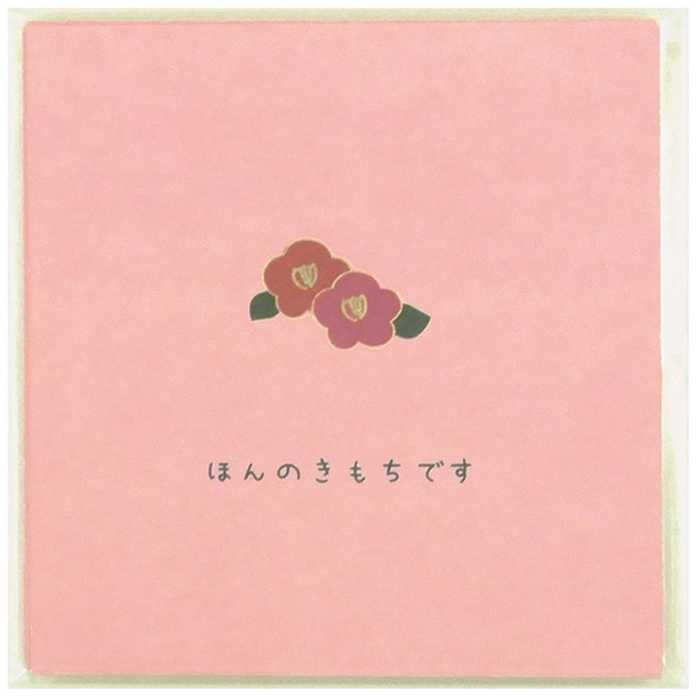 椿のイラストとメッセージが描かれたましかくのぽち袋。一部箔押しされていてポイントになっています。3枚入り。