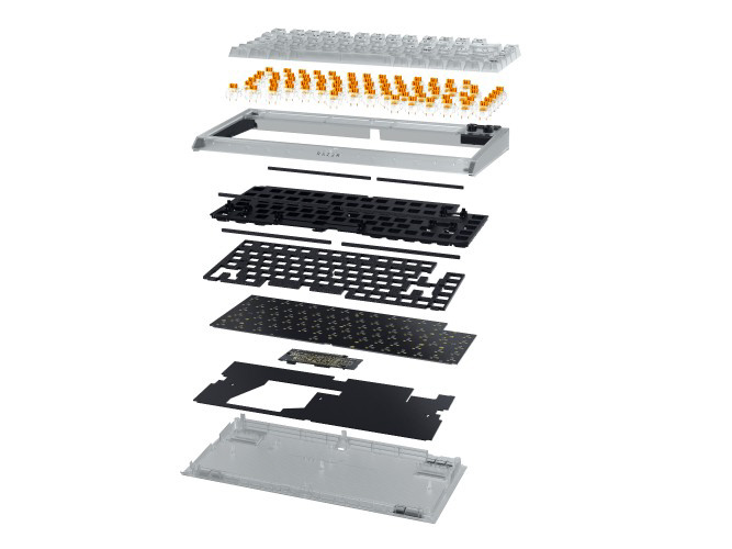 ガスケットマウントの FR4 基板、テープ補強した PCB、潤滑スタビライザー、2 層の音を抑えるフォームによるバランスの取れた軽いキーストロークで、満足のいく音が感じられます。