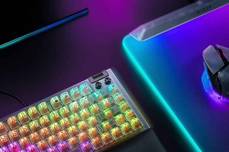 Razer BlackWidow V4 75%は、優れたカスタマイズ性と没入感を求めるユーザー向けの、コンパクトでホットスワップ可能な Razer Chroma RGB 対応メカニカルキーボード。新しいスイッチの取り付けから独自のライティング効果の制作まで、プレイスタイルに合わせて思い通りの構築が可能です。