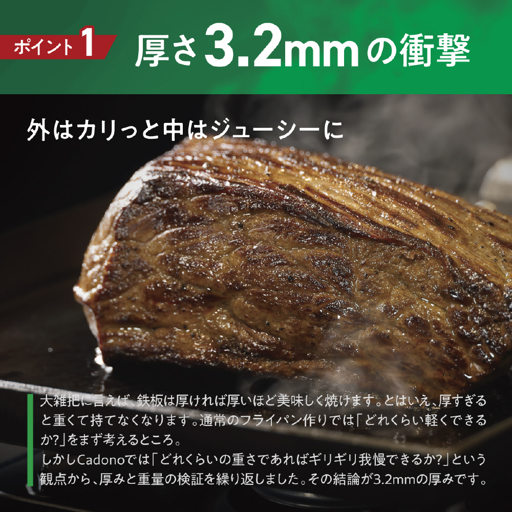 お家で鉄板焼きが気軽に楽しめる『Cadono鉄板焼き用3.2mm極厚フライパン』