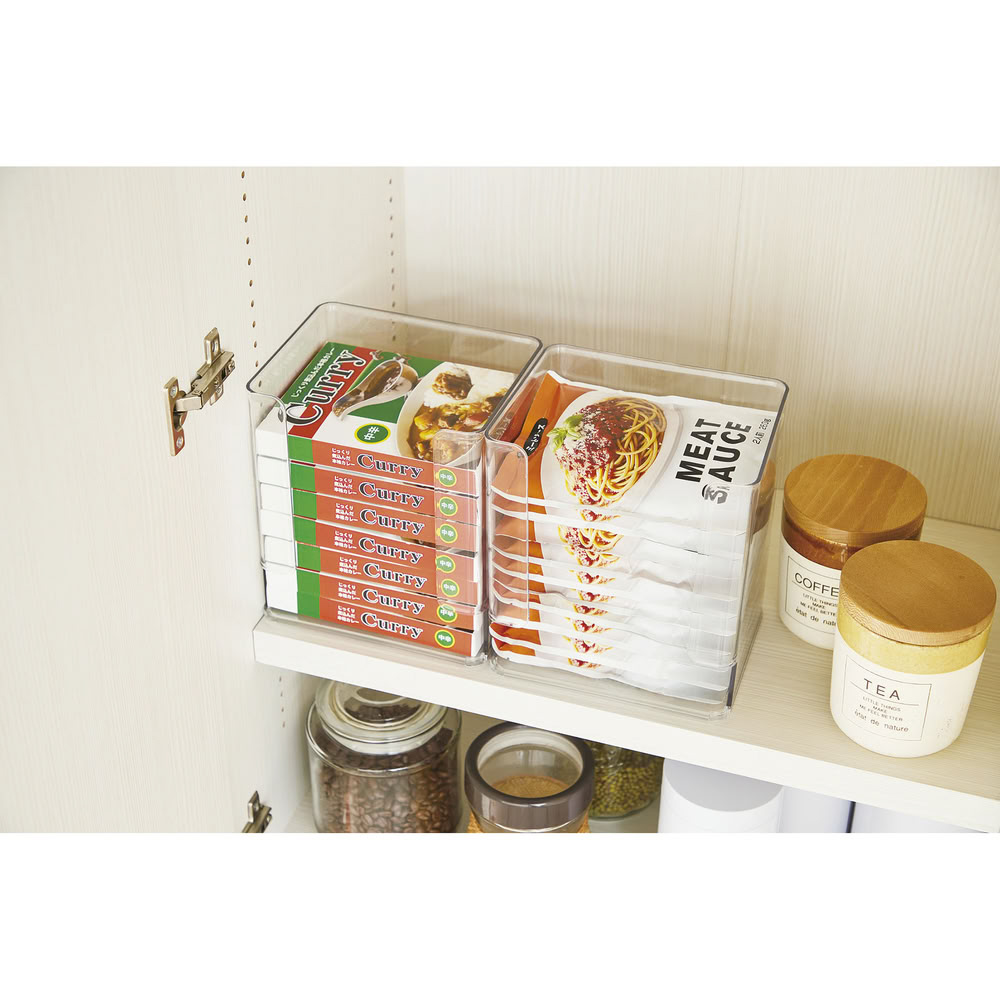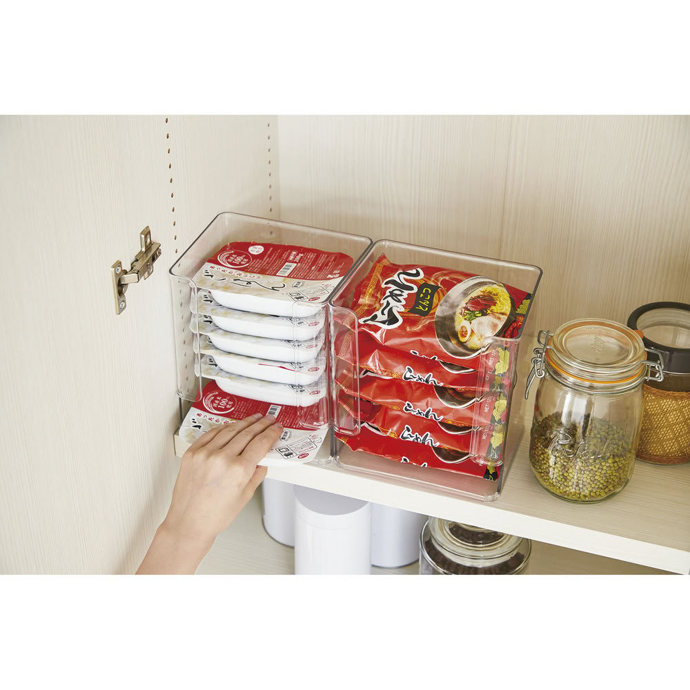 パックご飯や袋入りインスタントラーメン、レトルト食品などの収納に役立ちます。