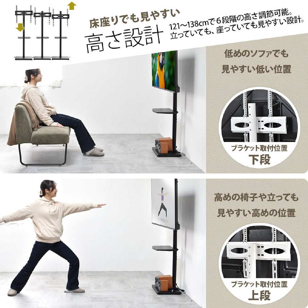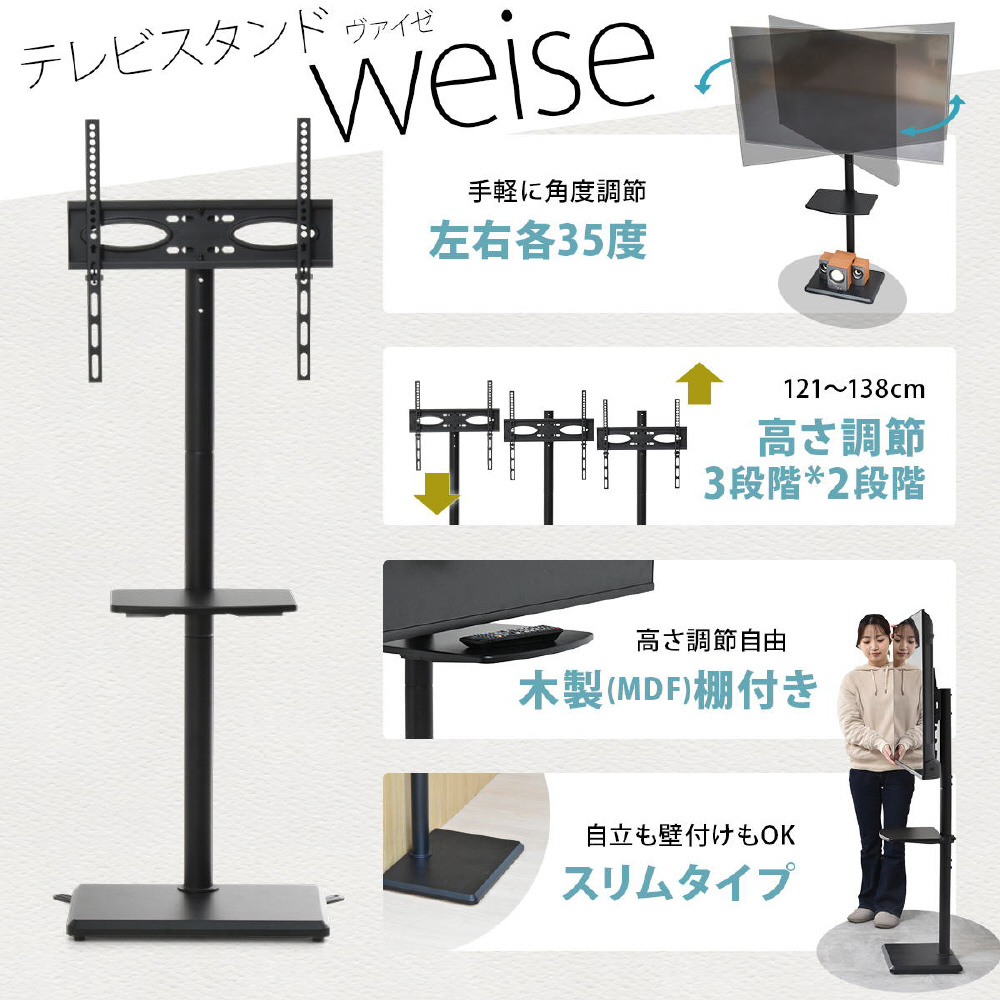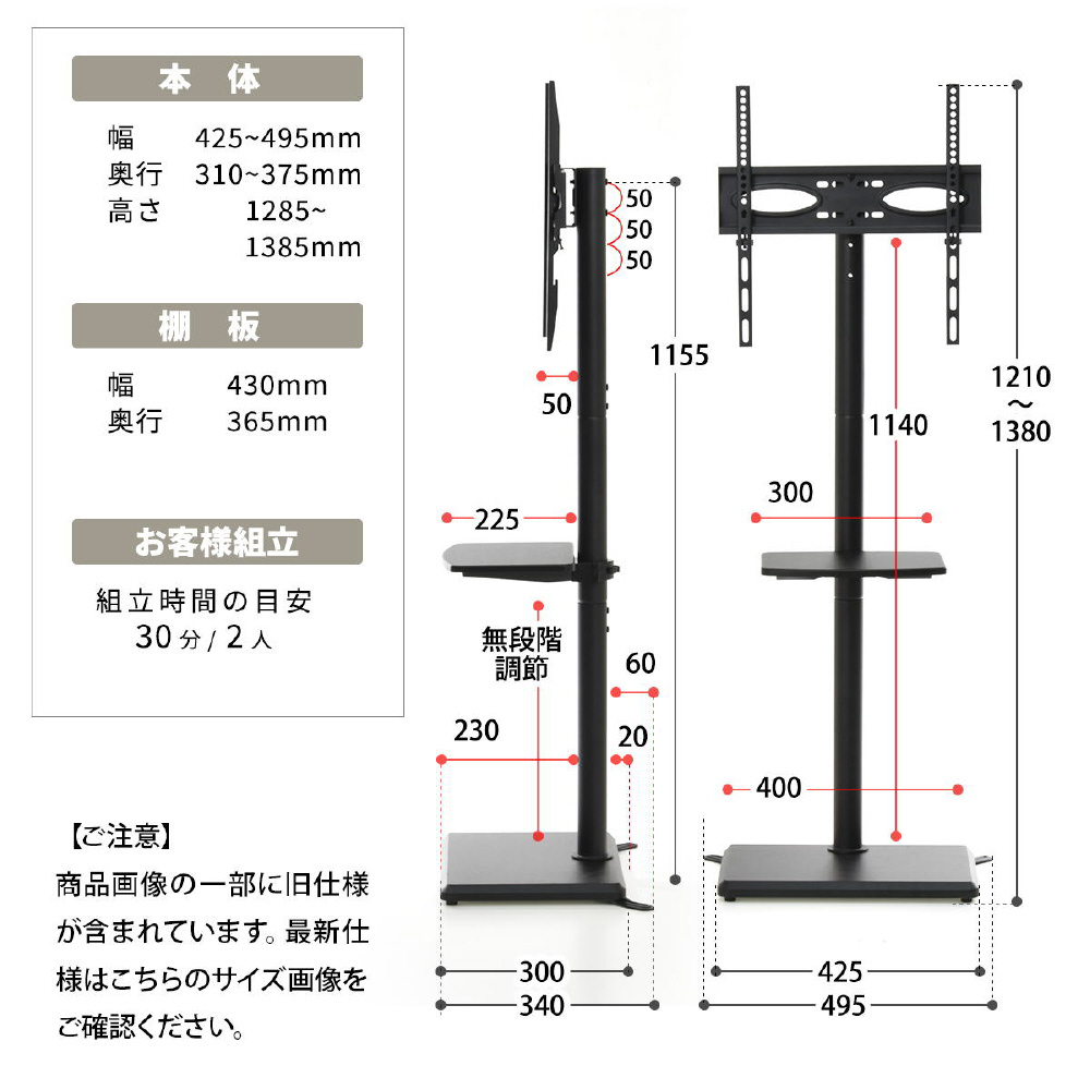 ■素材:【支柱】スチール(粉体塗装) 【底板】中質繊維板(メラミン貼り) 【対応テレビ】32-55型 【対応VESA】100×100〜400×400mm