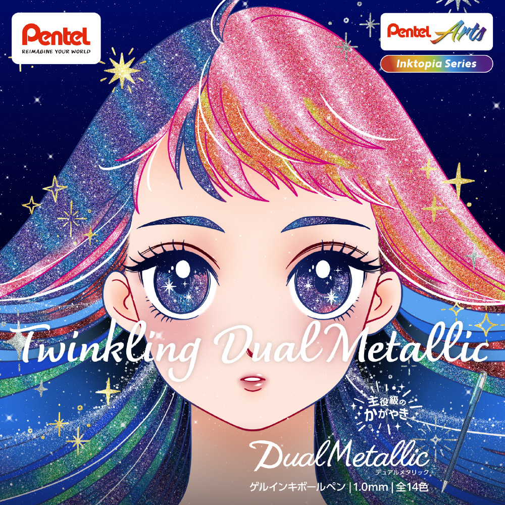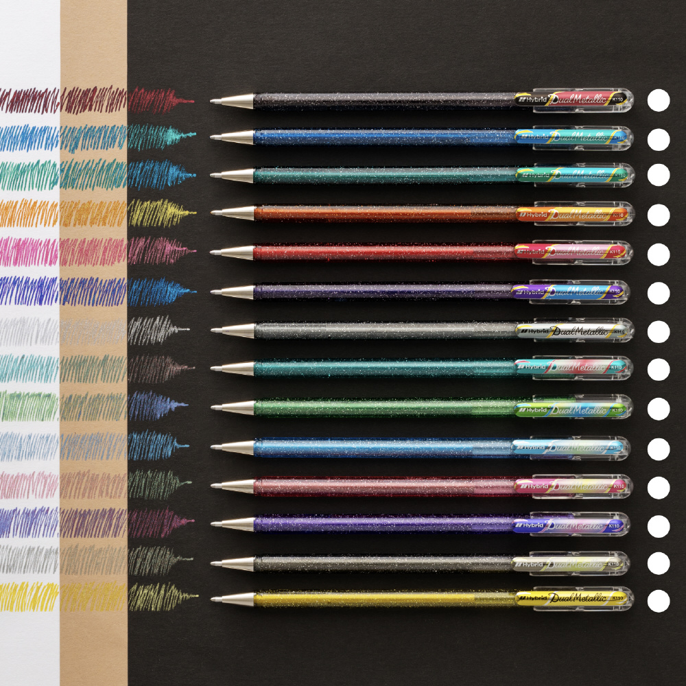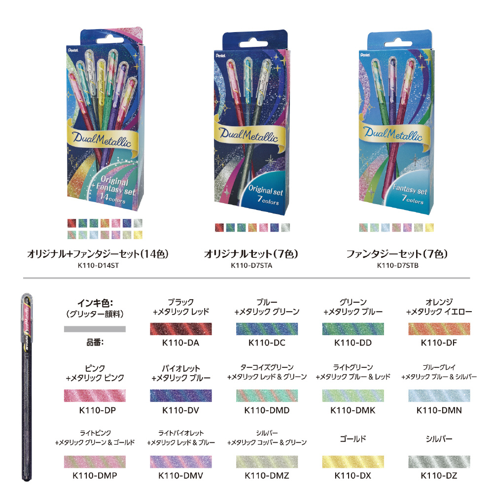 グリッター入りゲルインキボールペン デュアルメタリック オリジナル+ファンタジーセット14色 K110-D14ST [1.0mm]