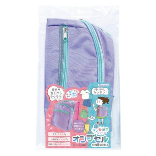 ランドセルに取り付けられる補助バッグです。荷物が多いとき両手に手提げ袋などを持って登下校すると転倒した場合にケガする可能性が増えたり、緊急時に防犯ブザーを使うこともできません。また、雨天時に傘をさすのも大変です。そういった問題を解消することができる便利な補助バッグです。