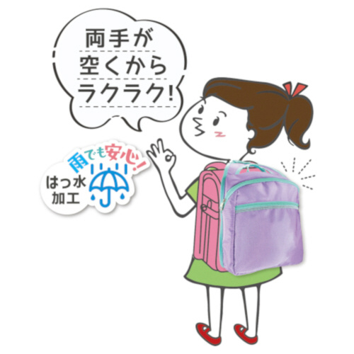 ・両手が空くから安心通学:様々な荷物(うわばき・体操着・水筒など)を収納でき、両手が空けることができ登下校時も安心です。