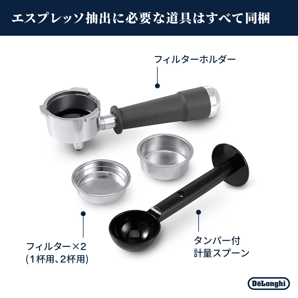 フィルターホルダー、1杯用フィルター、2杯用フィルター、タンパー付計量スプーン
