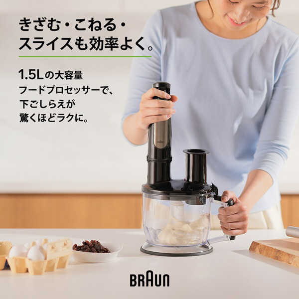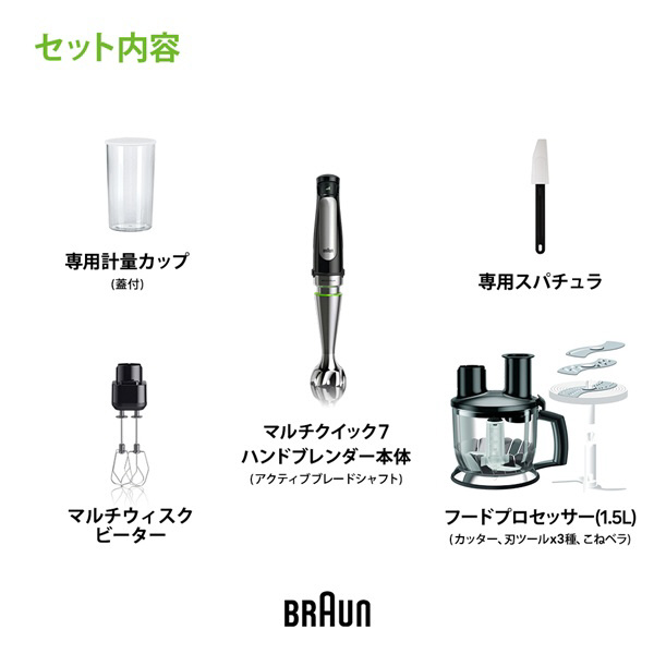 マルチウィスクビーター、フードプロセッサー、専用計量カップ、専用スパチュラ