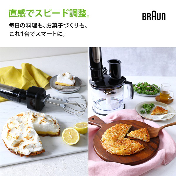 ■1台9役。毎日の食事からお菓子づくりまで、感覚に寄り添って、もっと自由に。■業界初のイージースマートスピードテクノロジーで、仕上がりは手の感覚でコントロール。■下ごしらえも、お菓子も、レパートリーが無限に広がる。■効率も仕上がりも妥協しない、頼れる1台です。
