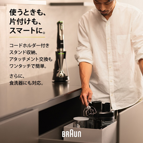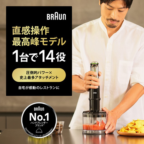 ■ハンドブレンダーNo.1*ブランド、ブラウンのフラグシップモデル。■業界最大級の500Wハイパワーモーターを搭載し、アクティブブレードやスマートスピードなど独自の操作性を搭載。■多彩なアタッチメントが付属し、1台で14役をこなす最高峰モデル。■「仕上がりの質」にこだわる料理好きにこそふさわしい、最大級の1台です。*2023年度年間シェアリーダー/独立調査機関調べ