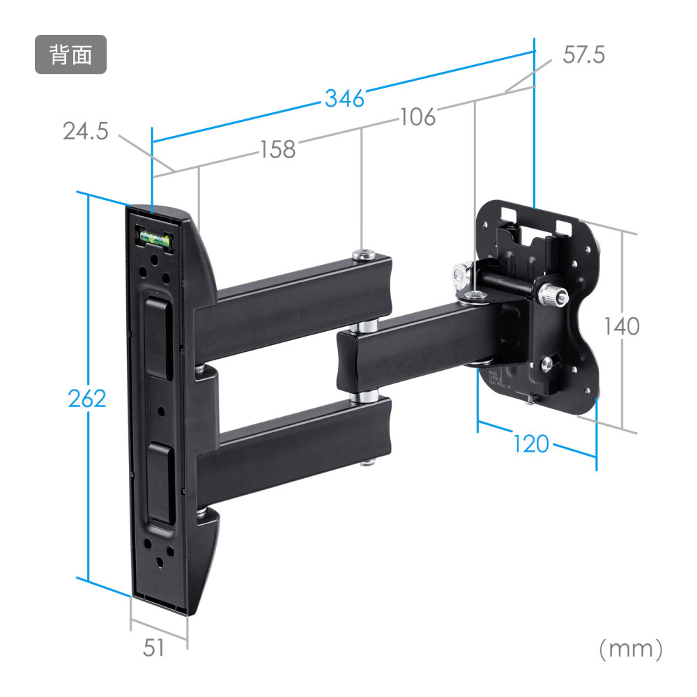 ●3つの関節アームにより柔軟な位置調整が可能です。テレビの角度調整が簡単で、どの方向からでも見やすい角度に設定可能です。