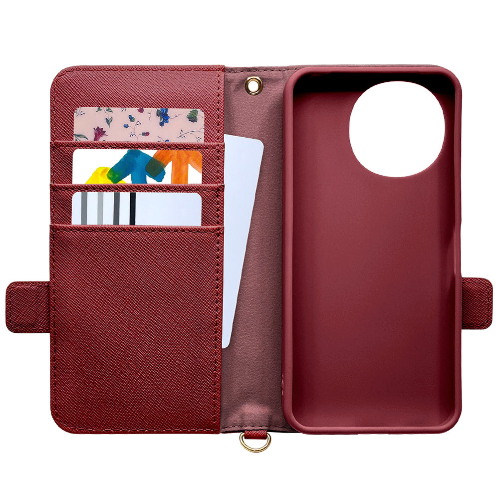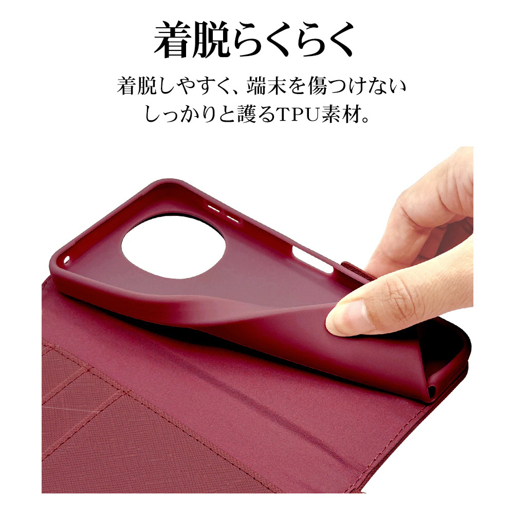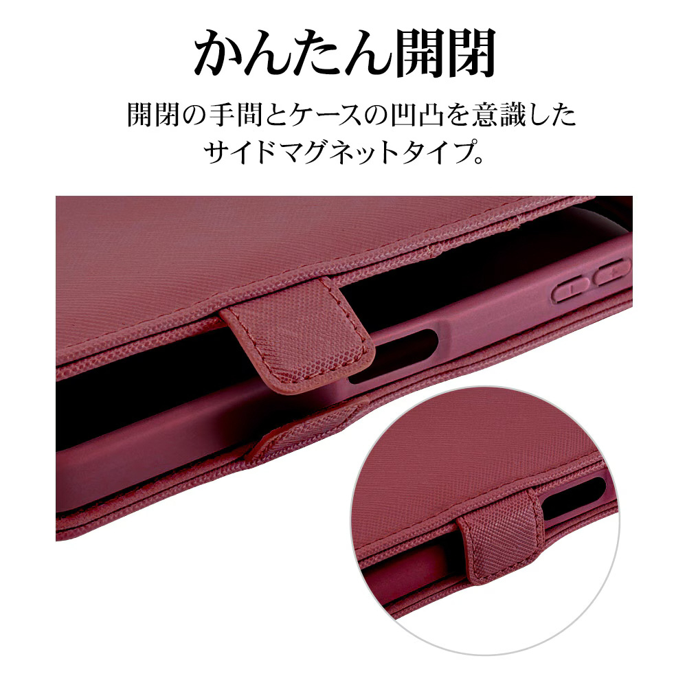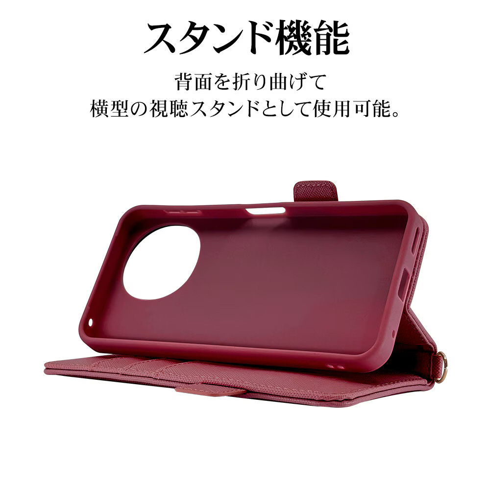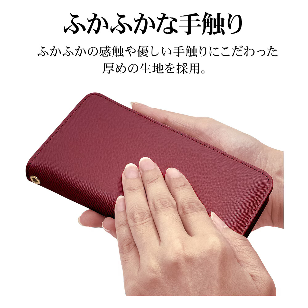 液晶画面側と背面側の両面を保護できるハンドストラップ付きの手帳型ケースです。