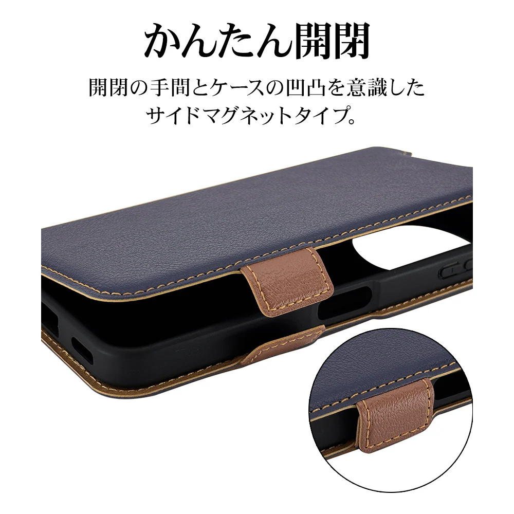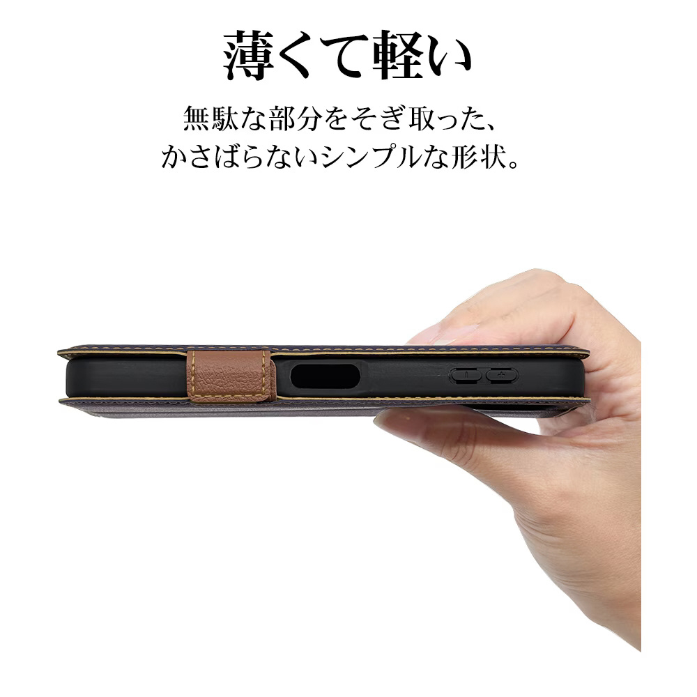 液晶画面側と背面側の両面を保護できる薄型で持ちやすい手帳型ケースです。
